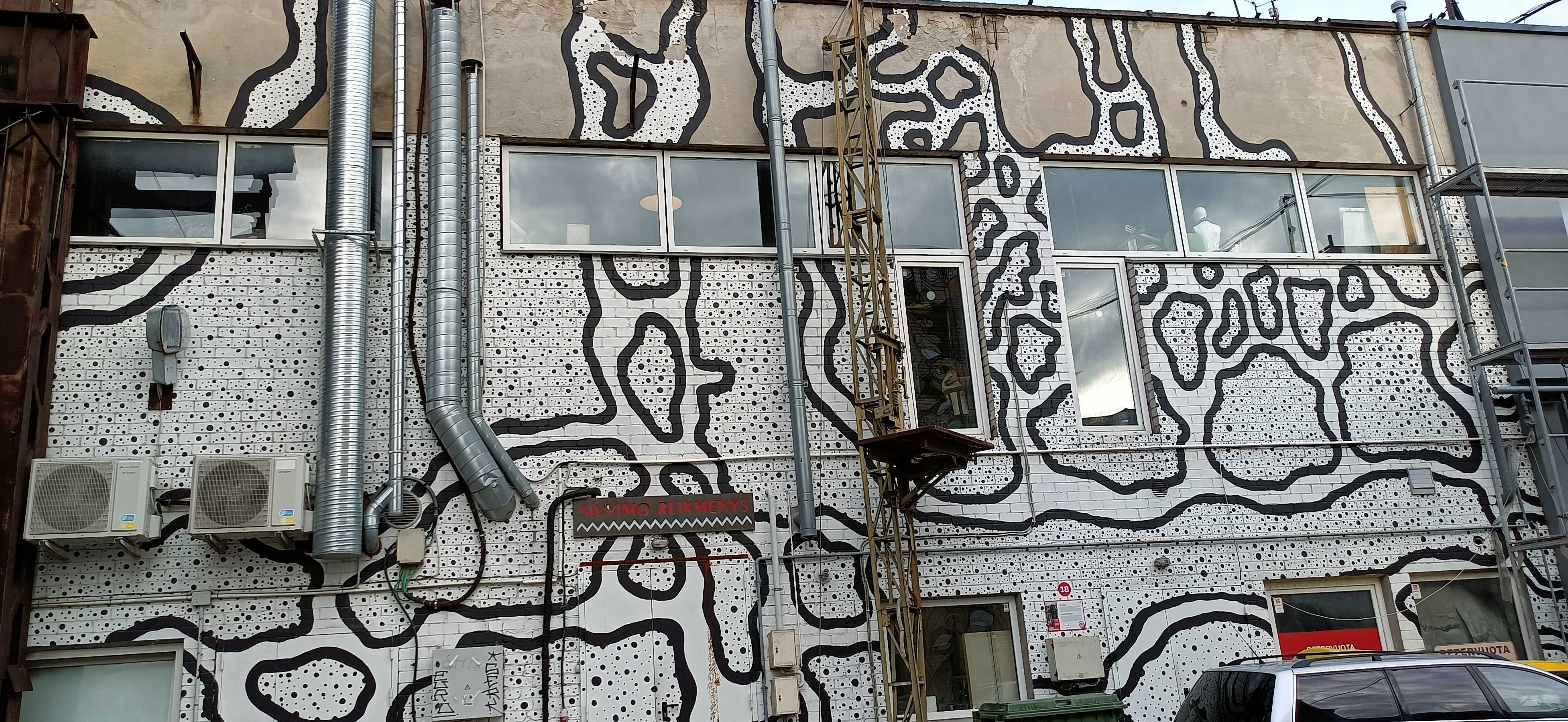 The artwork is of graffiti type. You can admire it in the city of Vilnius in Lithuania and more precisely here : Kauno g. 23, 03209 Vilnius, Lithuania.