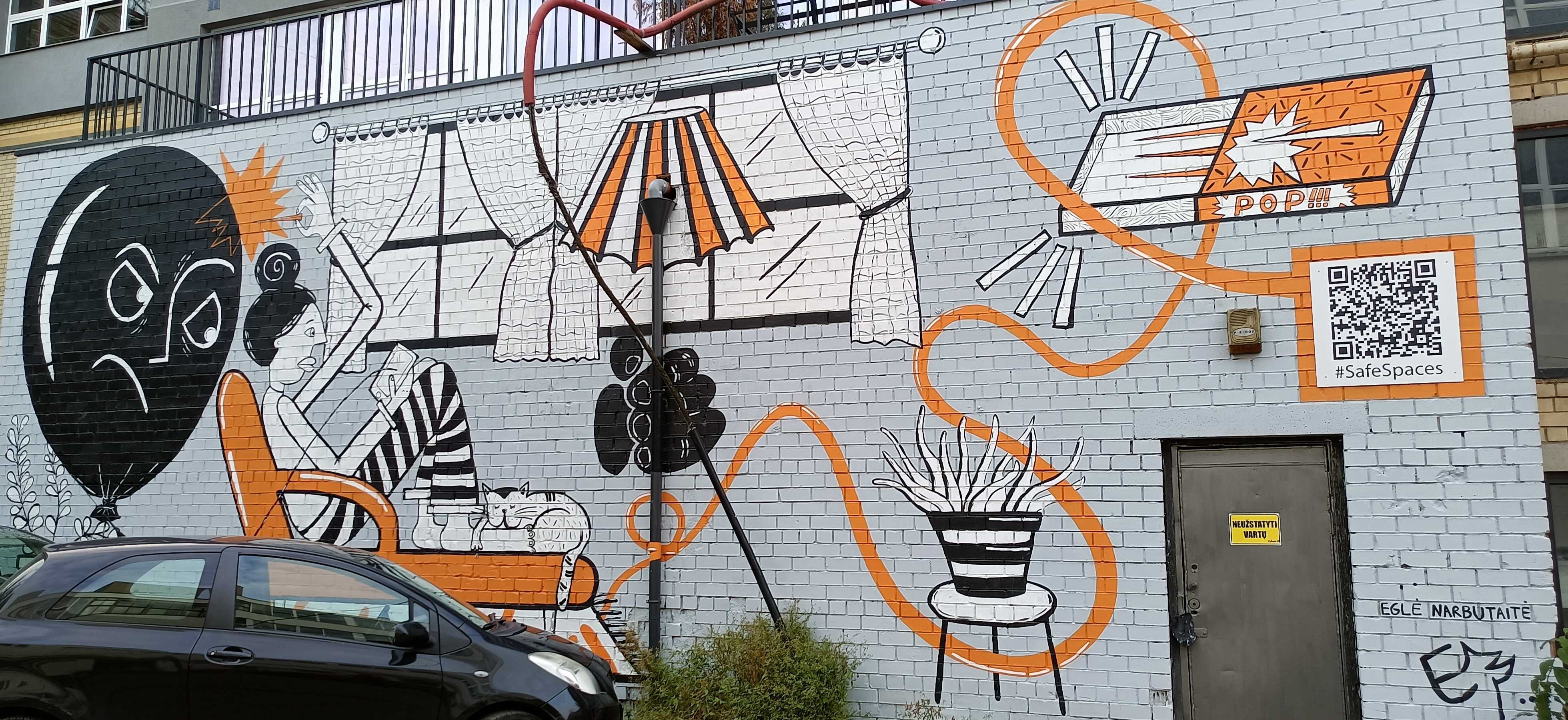 The artwork is of graffiti type. You can admire it in the city of Vilnius in Lithuania and more precisely here : PaneriĊ³ g. 45G-29, 03202 Vilnius, Lithuania.