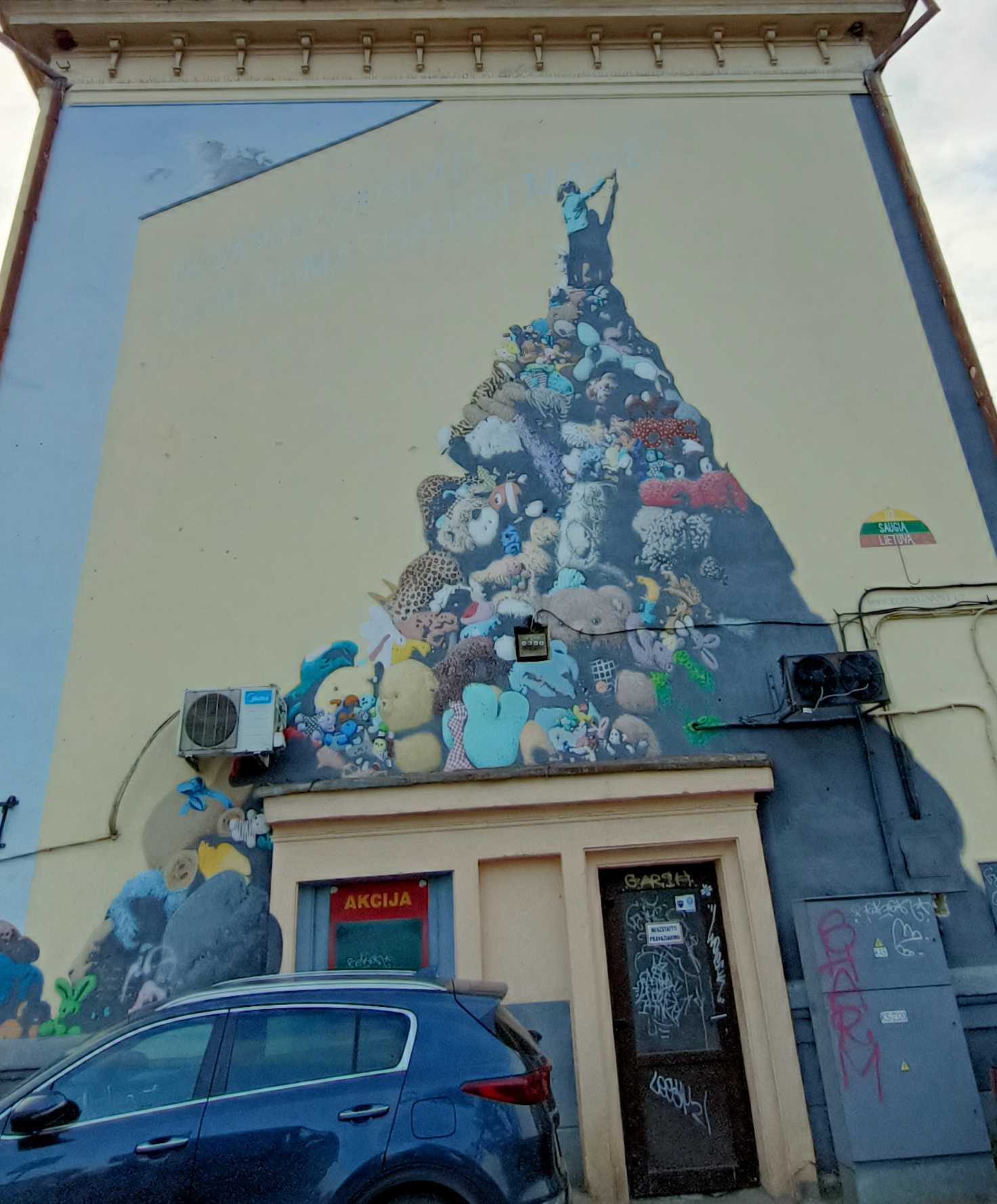The artwork is of graffiti type. You can admire it in the city of Vilnius in Lithuania and more precisely here : Vienaragių st., 03229 Vilnius, Lithuania.