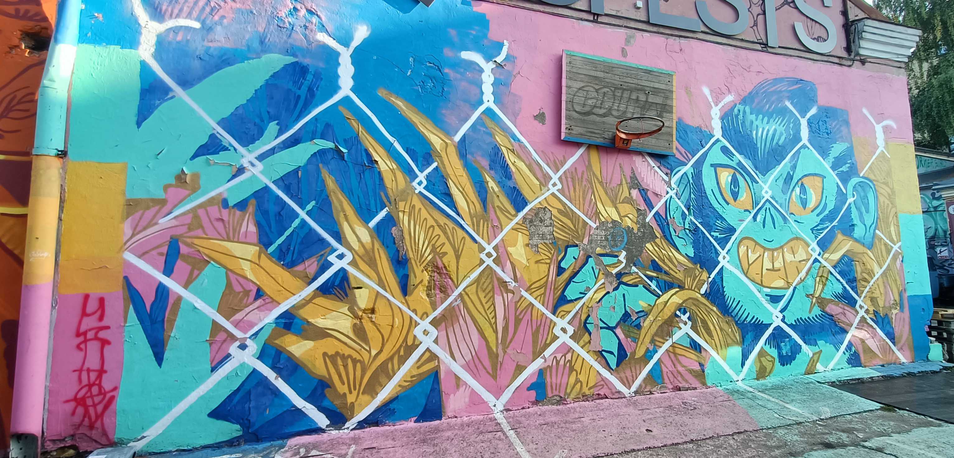 The artwork is of graffiti type. You can admire it in the city of Rīga in Latvia and more precisely here : Tallinas iela 10, Centra rajons, Rīga, LV-1001, Latvia.