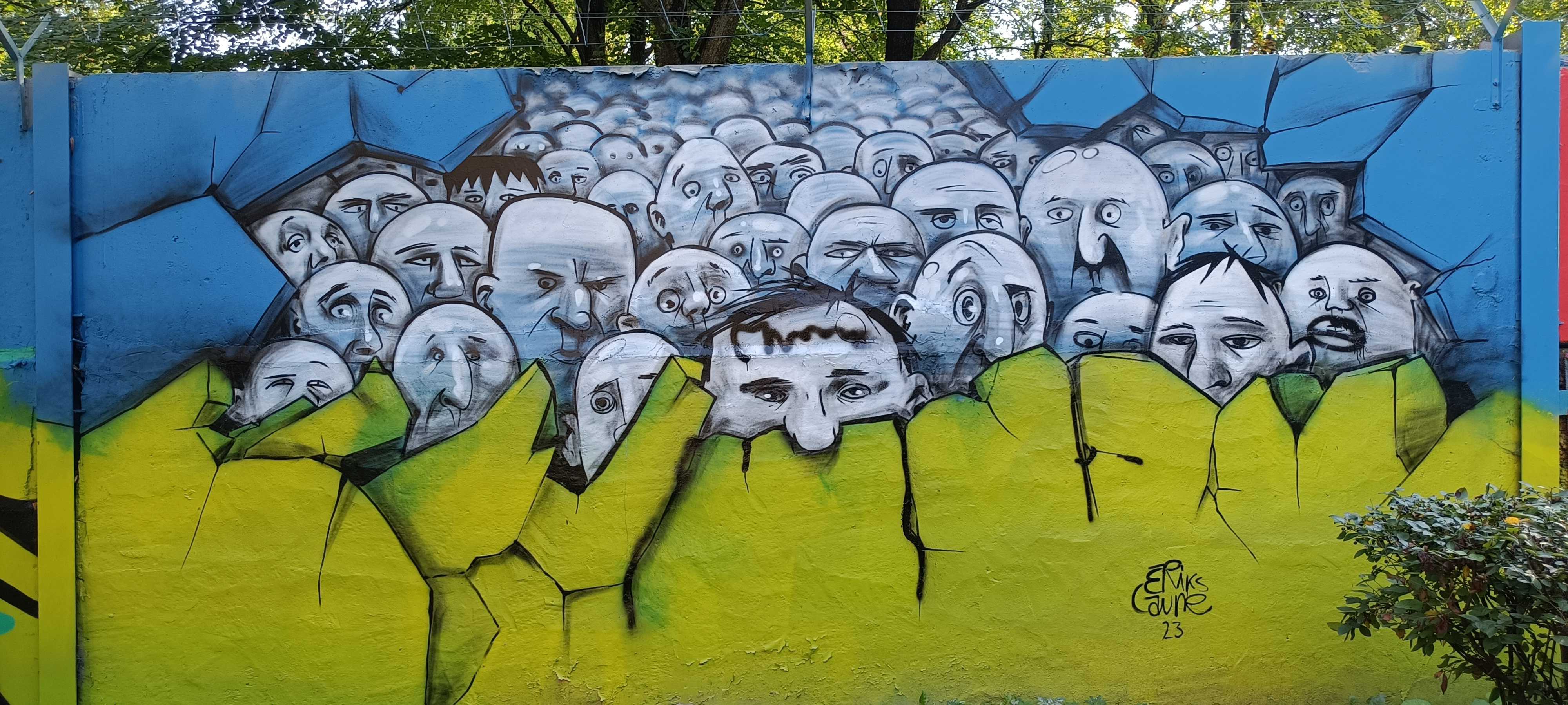The artwork is of graffiti type. You can admire it in the city of Rīga in Latvia and more precisely here : Ganību dambis 63, Ziemeļu rajons, Rīga, LV-1005, Latvia.