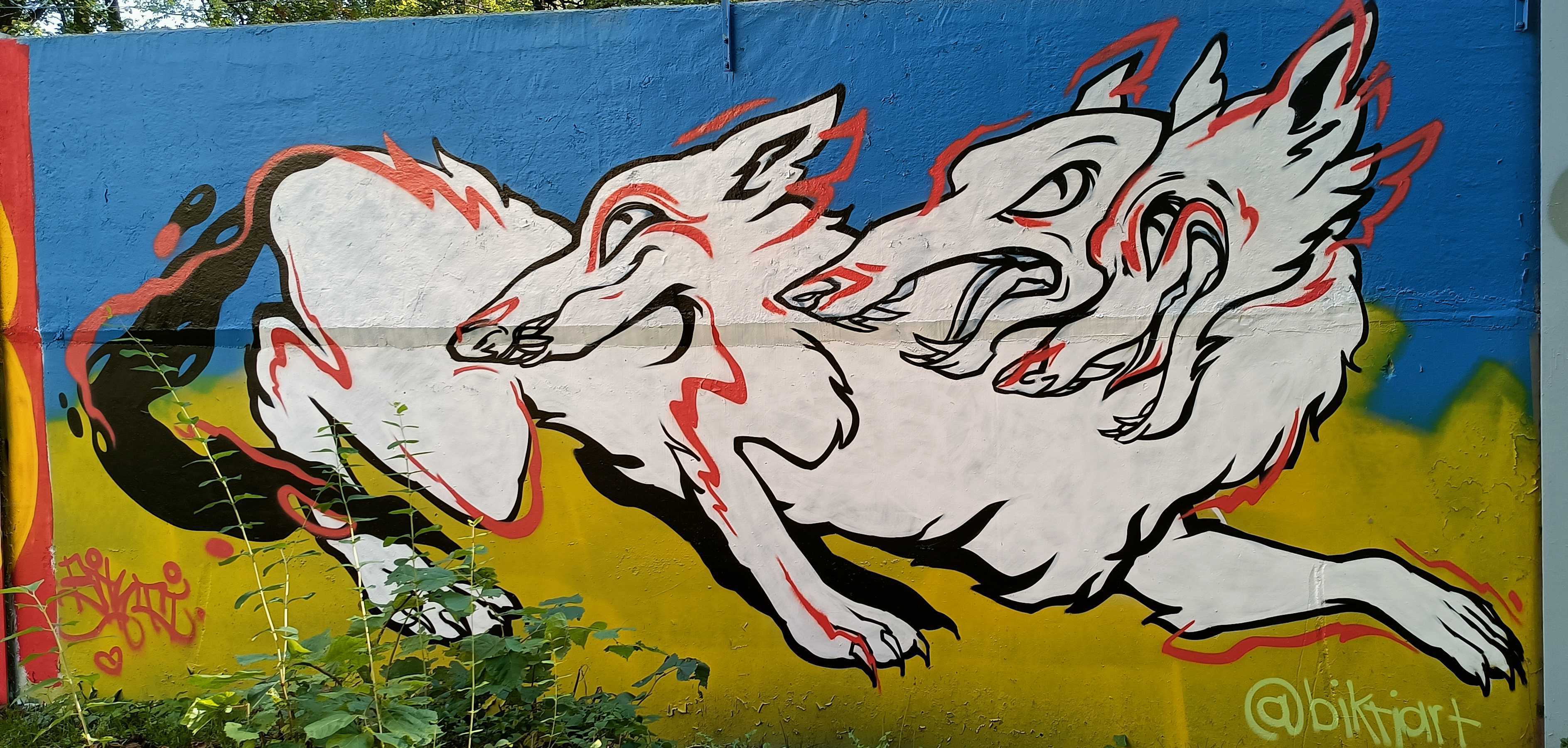 The artwork is of graffiti type. You can admire it in the city of Rīga in Latvia and more precisely here : Ganību dambis 63, Ziemeļu rajons, Rīga, LV-1005, Latvia.