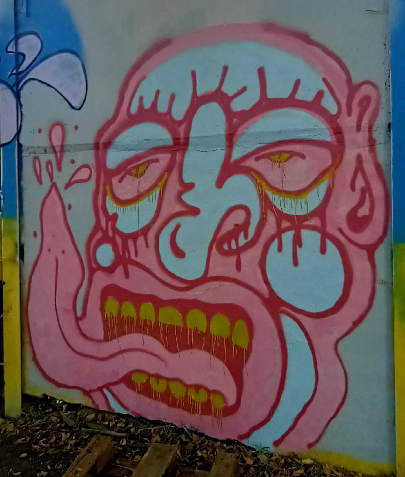 The artwork is of graffiti type. You can admire it in the city of Rīga in Latvia and more precisely here : Ganību dambis 63, Ziemeļu rajons, Rīga, LV-1005, Latvia.
