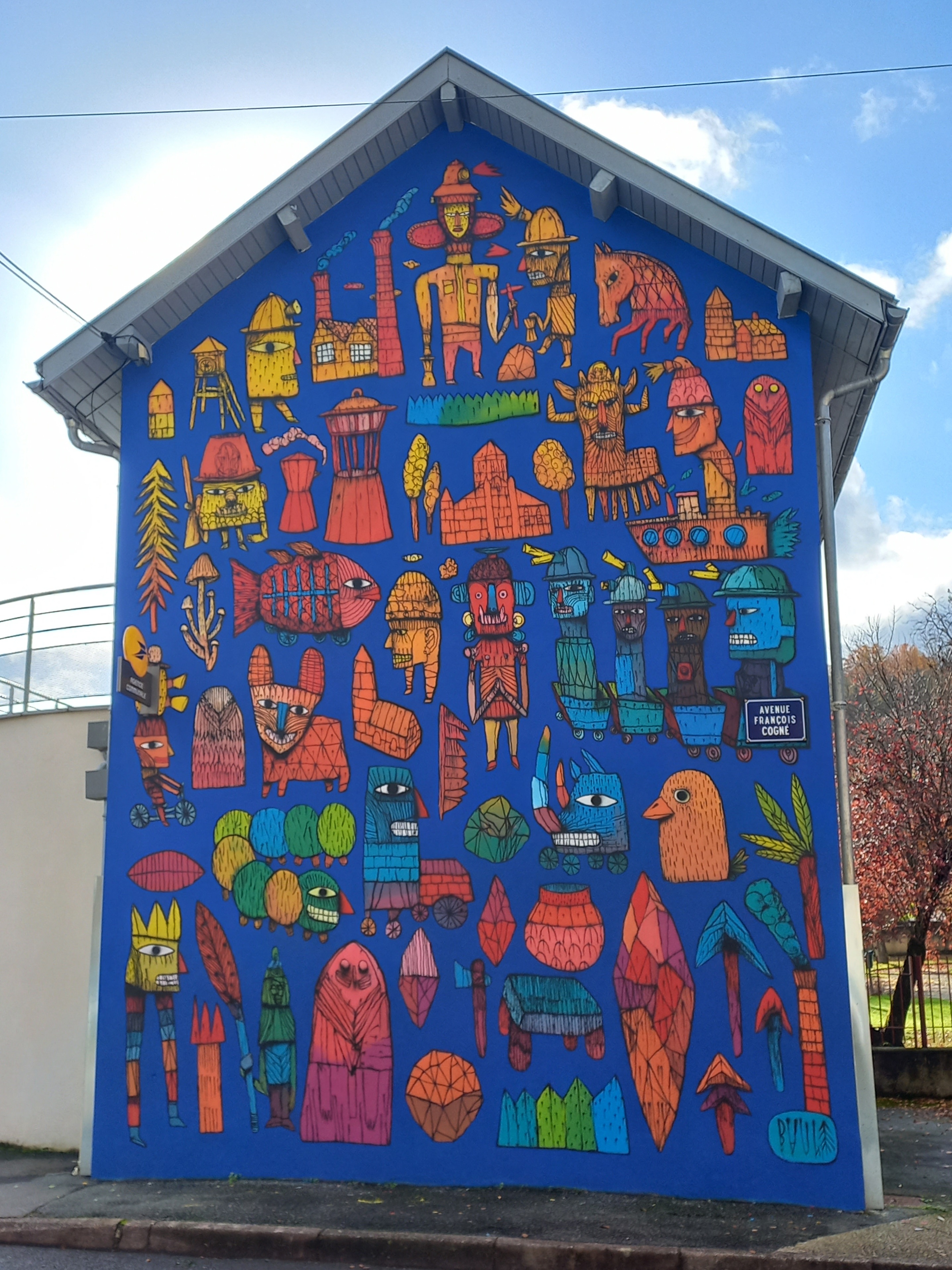 The artwork Bestiaires is of graffiti type. You can admire it in the city of Aubin in France and more precisely here : 2 AVENUE FRANCOIS COGNE LE GUA, 12110 Aubin, France.