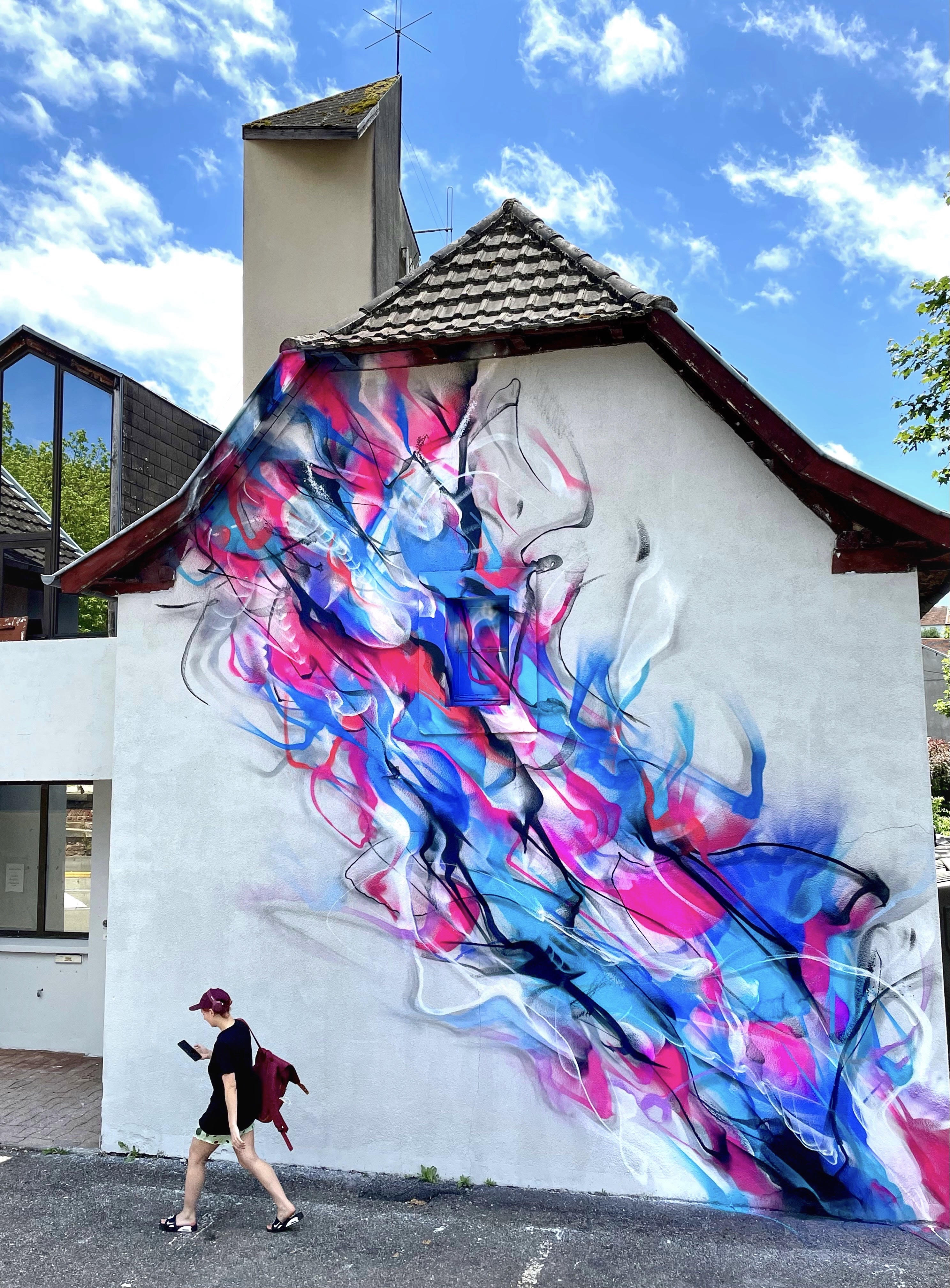 The artwork Abstract is of graffiti type. You can admire it in the city of Cransac in France and more precisely here : 2 Av. Jean Jaurès, 12110 Cransac, France.