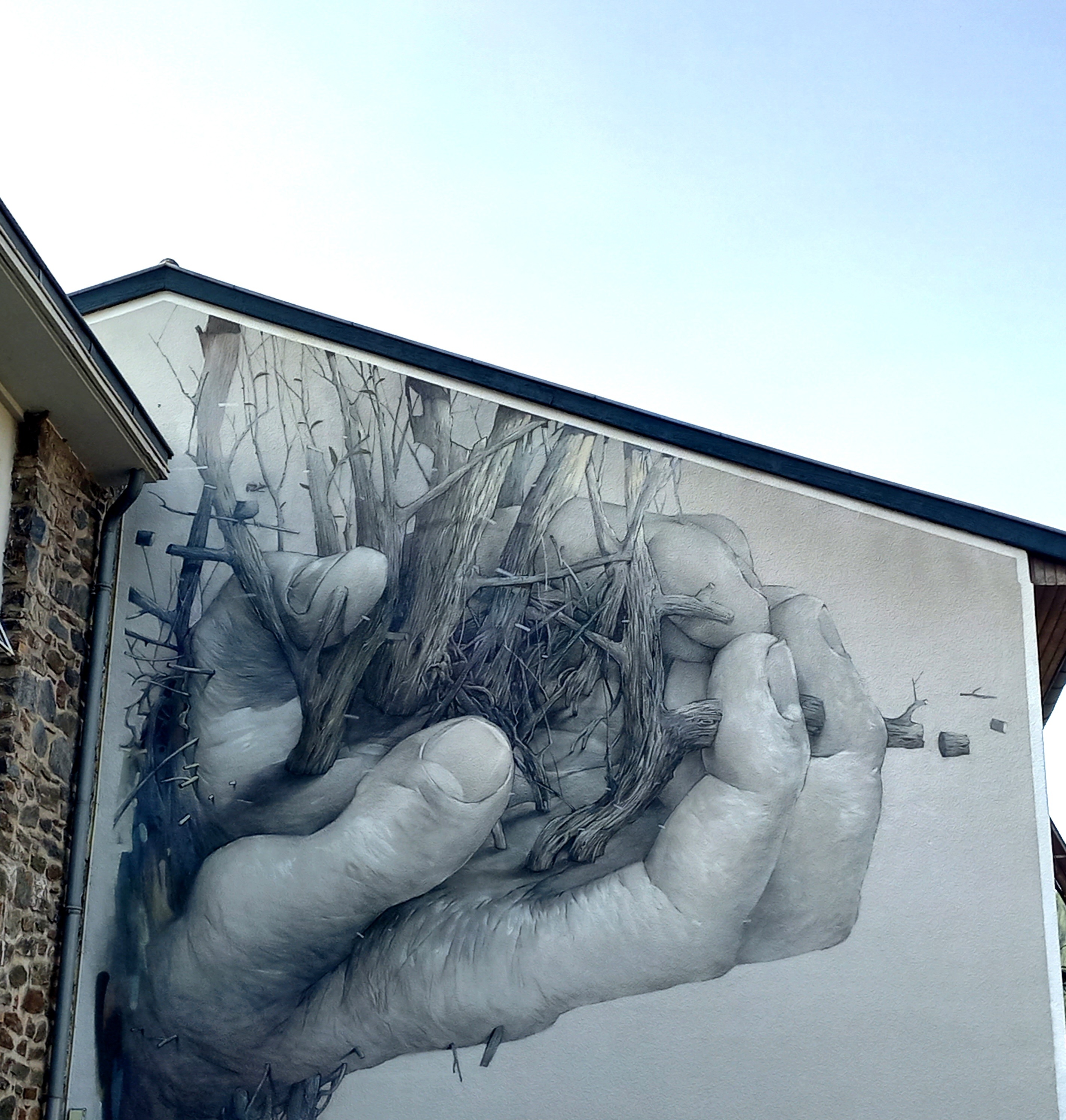 The artwork Remission is of graffiti type. You can admire it in the city of Viviez in France and more precisely here : 46 Pl. de la Victoire, 12110 Viviez, France.