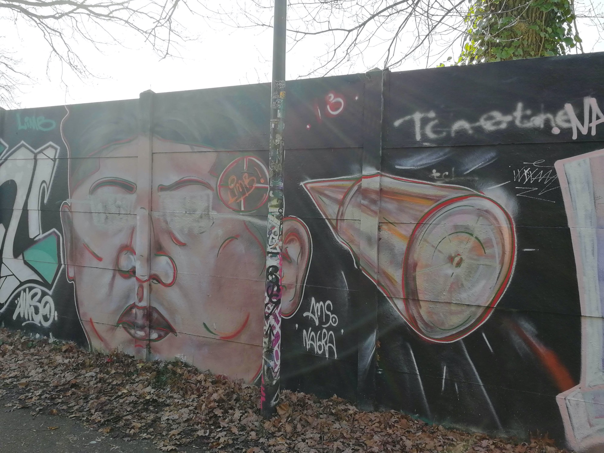 The artwork is of graffiti type. You can admire it in the city of Nantes in France and more precisely here : 8 Avenue de la Gare de Saint-Joseph, 44300 Nantes, France.