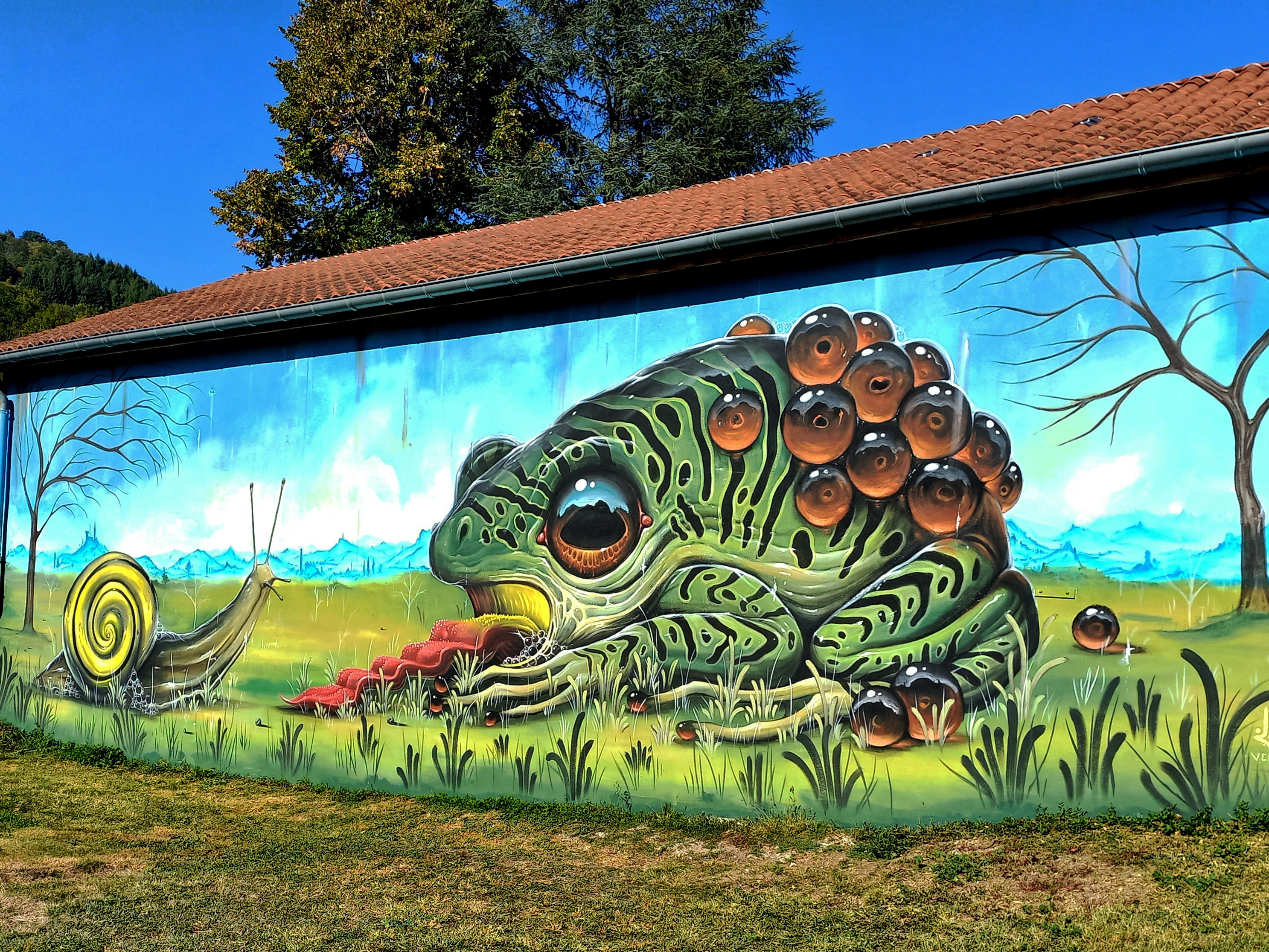 The artwork Croa is of graffiti type. You can admire it in the city of Boisse-Penchot in France and more precisely here : 9 Rue des Joutes, 12300 Boisse-Penchot, France.