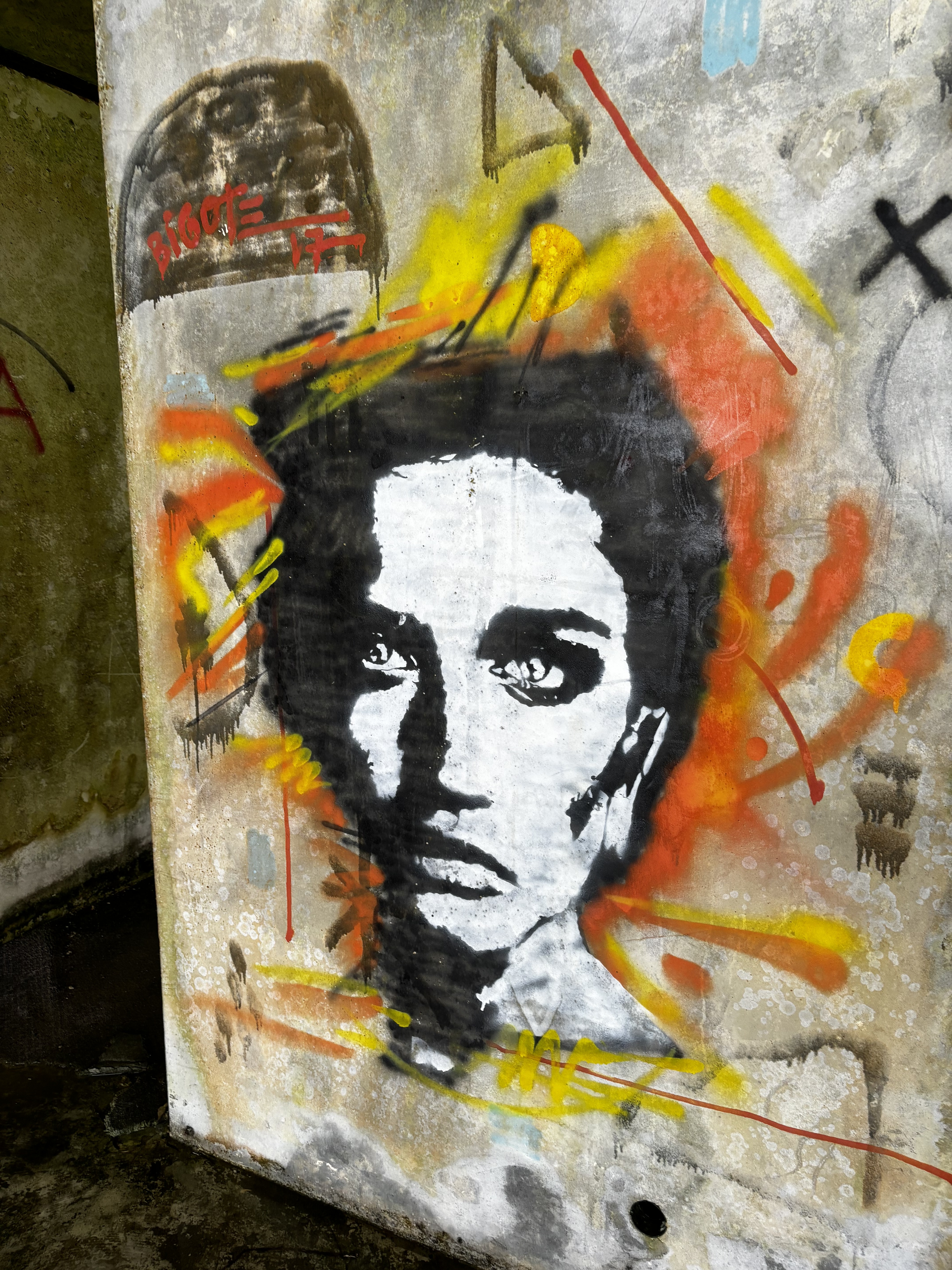 The artwork is of graffiti type. You can admire it in the city of Sete Cidades in Portugal and more precisely here : R6Q4+JH Sete Cidades, Portugal.