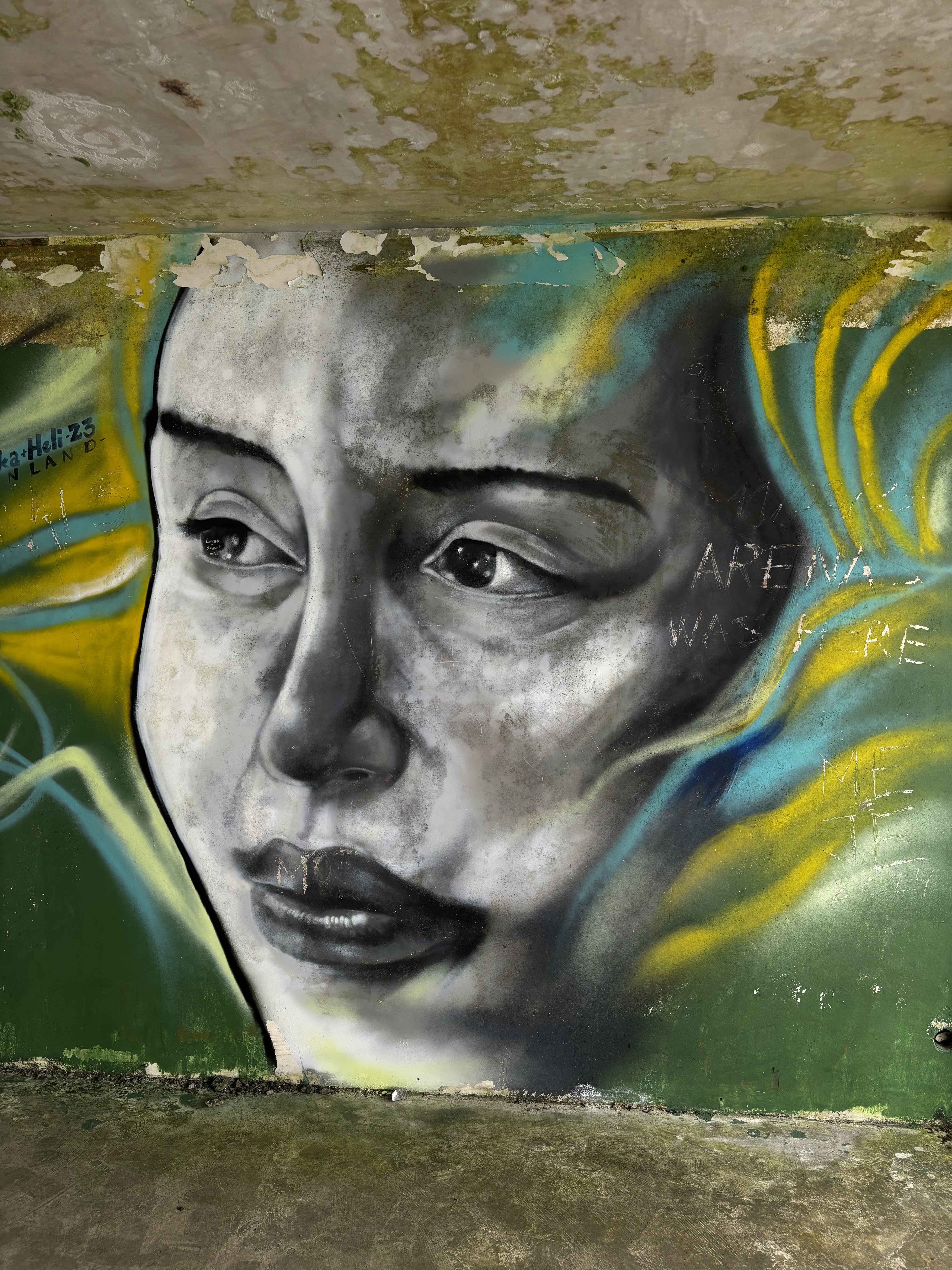 The artwork is of graffiti type. You can admire it in the city of Feteiras in Portugal and more precisely here : R6GG+GQ Feteiras, Portugal.