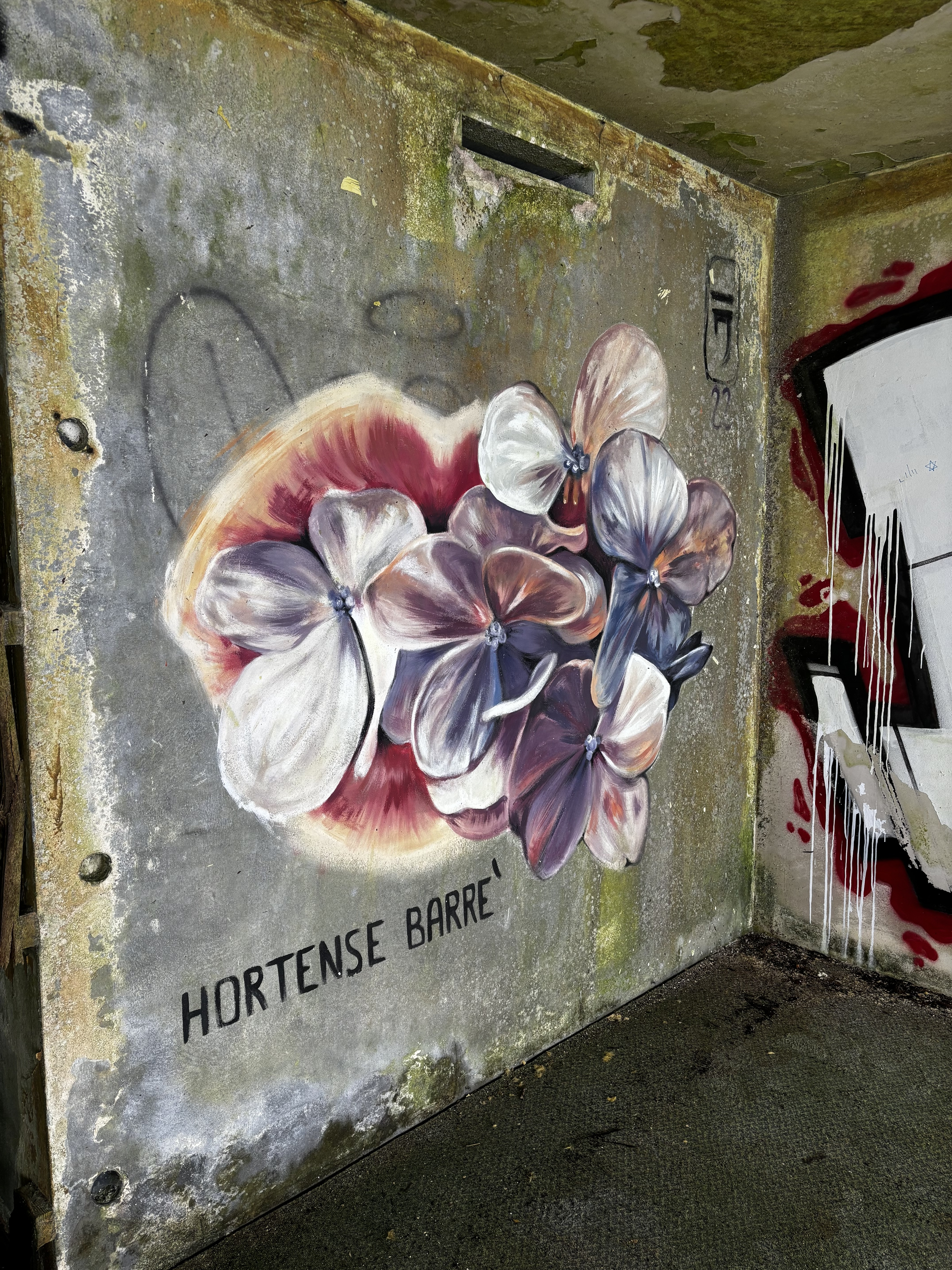 The artwork is of graffiti type. You can admire it in the city of Sete Cidades in Portugal and more precisely here : R6J9+WX Sete Cidades, Portugal.