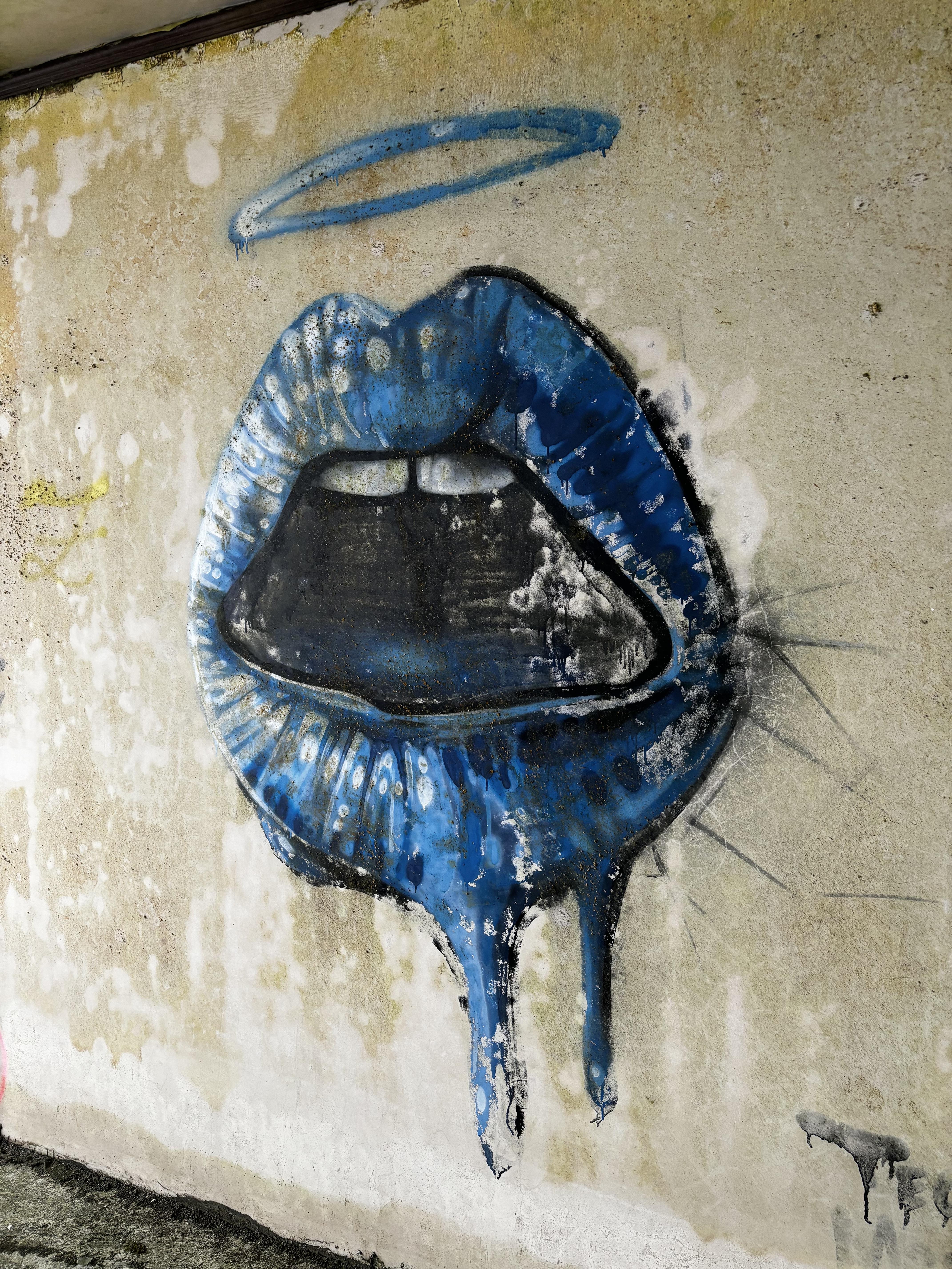 The artwork is of graffiti type. You can admire it in the city of Feteiras in Portugal and more precisely here : R6JC+35 Feteiras, Portugal.