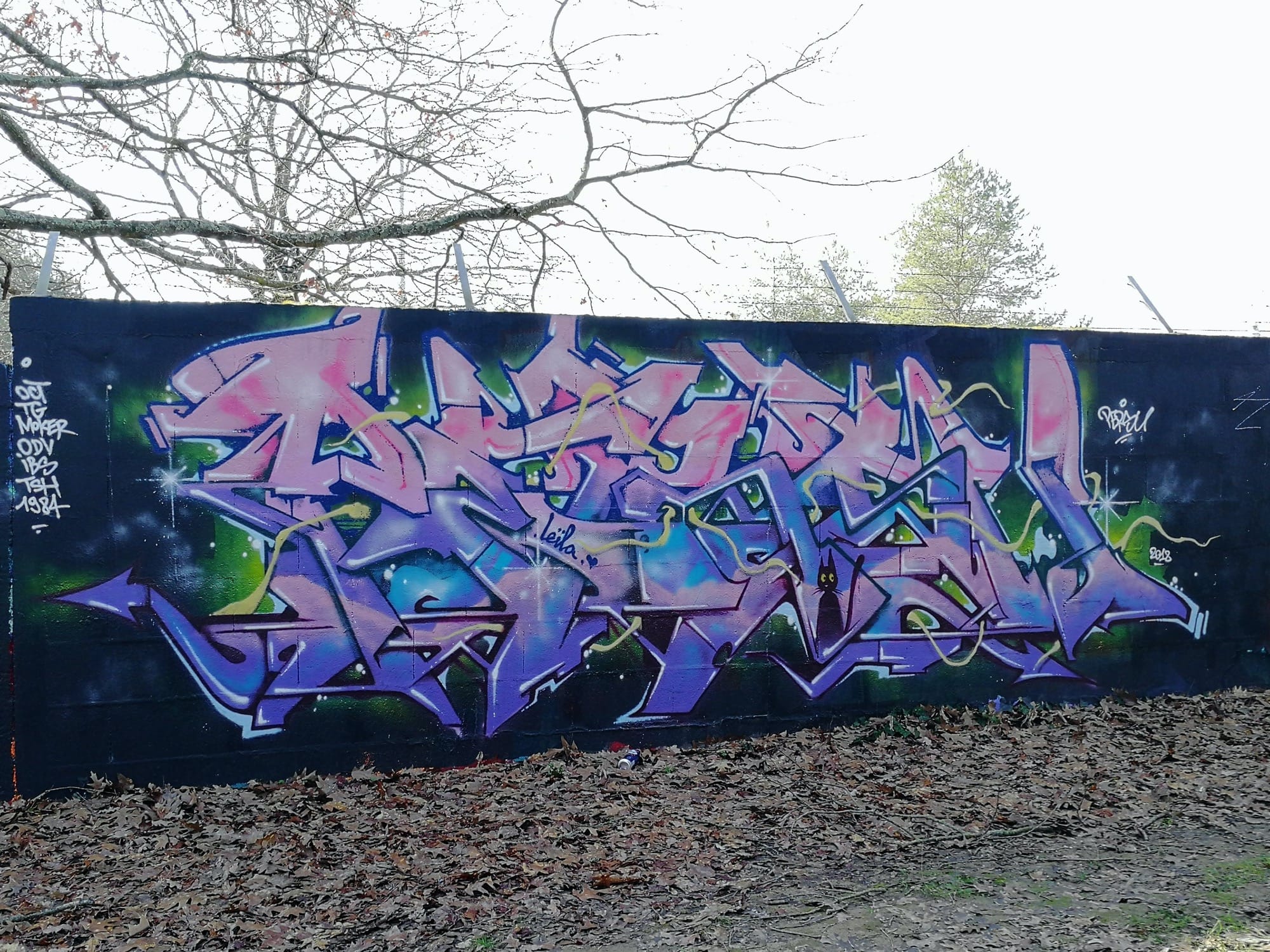 The artwork is of graffiti type. You can admire it in the city of Nantes in France and more precisely here : 21 Rue Léon Serpollet, 44300 Nantes, France.