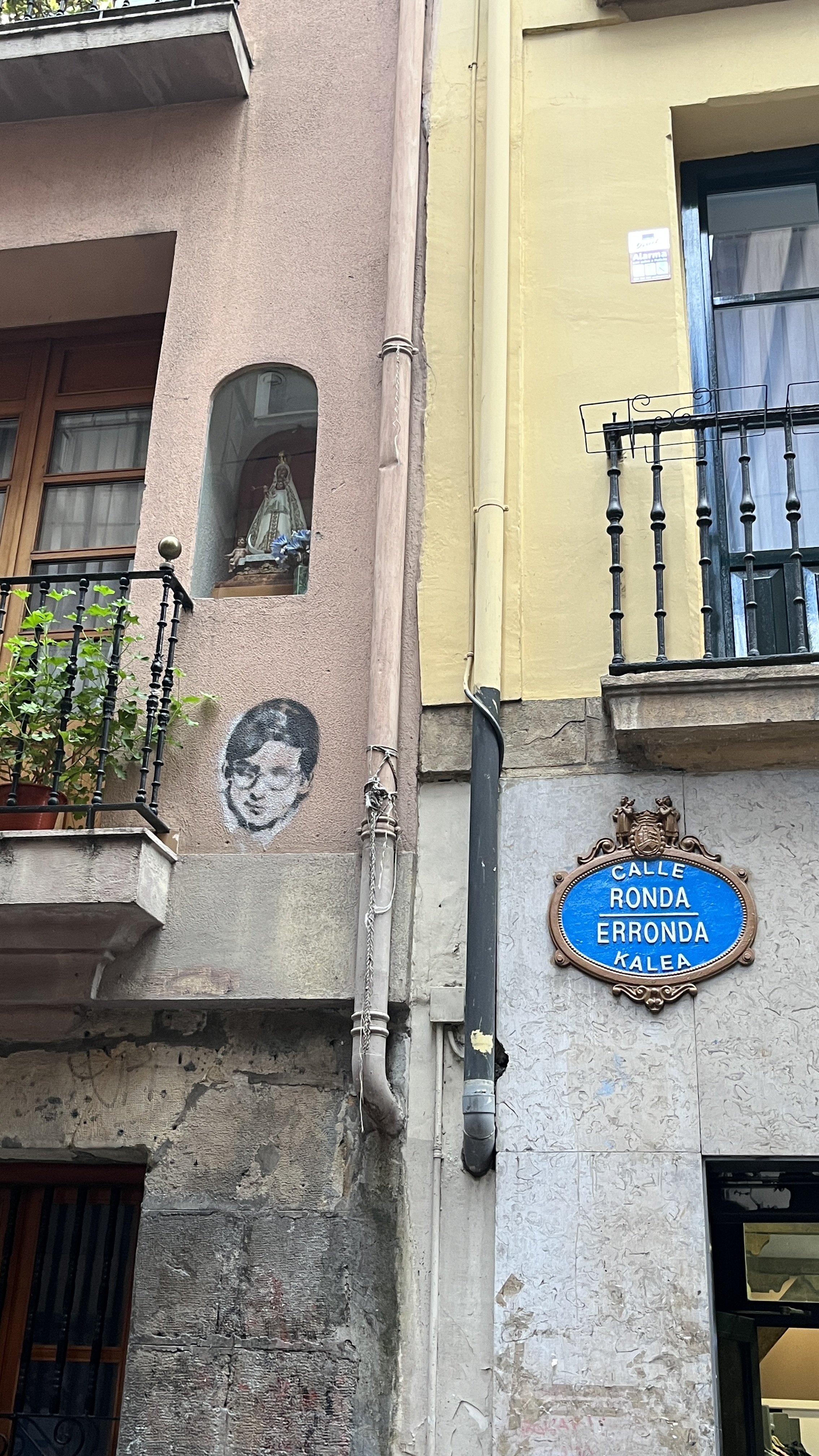 The artwork is of graffiti type. You can admire it in the city of Bilbo in Spain and more precisely here : Erronda Kalea, 16, Ibaiondo, 48005 Bilbo, Bizkaia, Spain.
