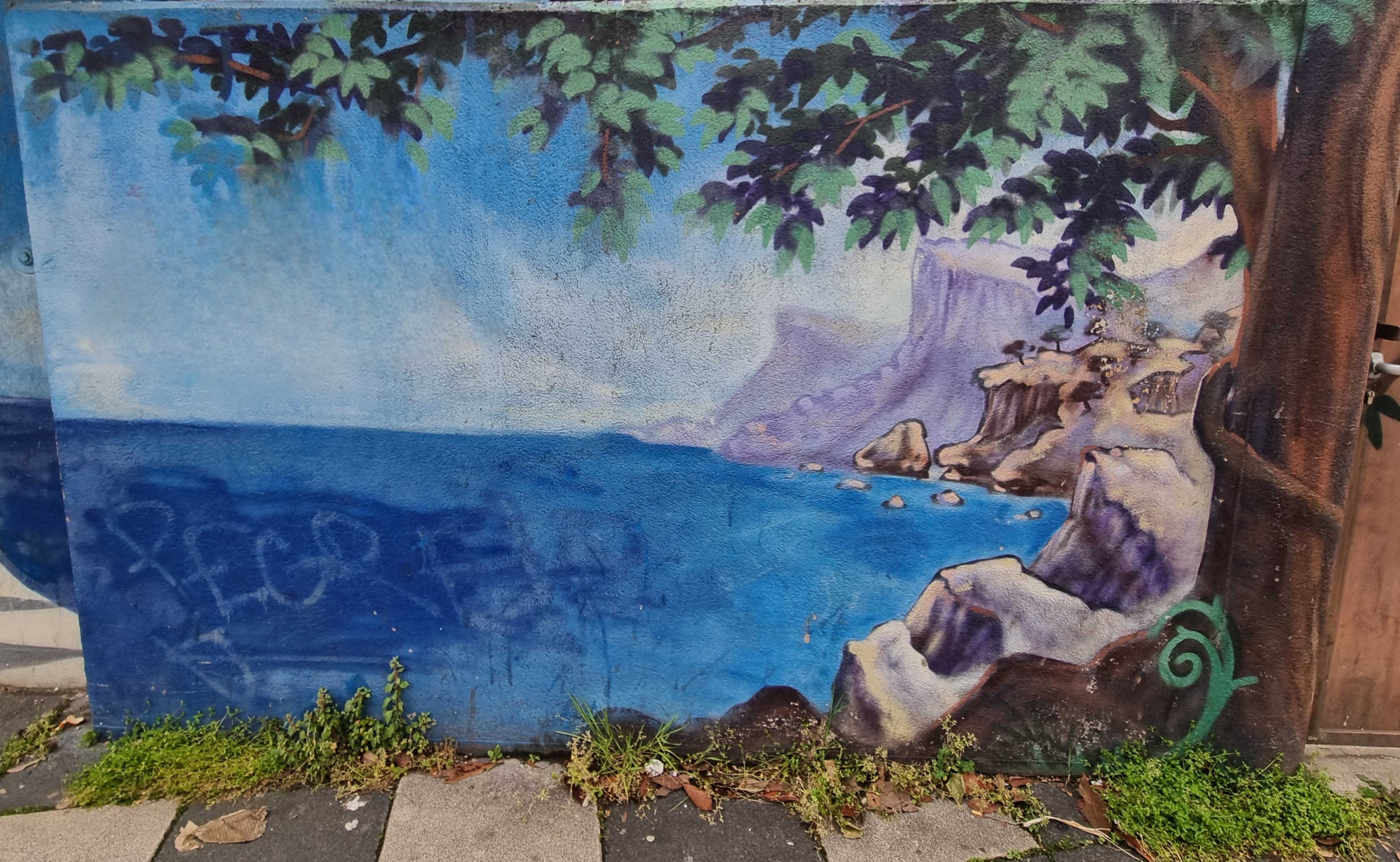The artwork is of graffiti type. You can admire it in the city of Grenoble in France and more precisely here : 89 Cr Berriat, 38000 Grenoble, France.