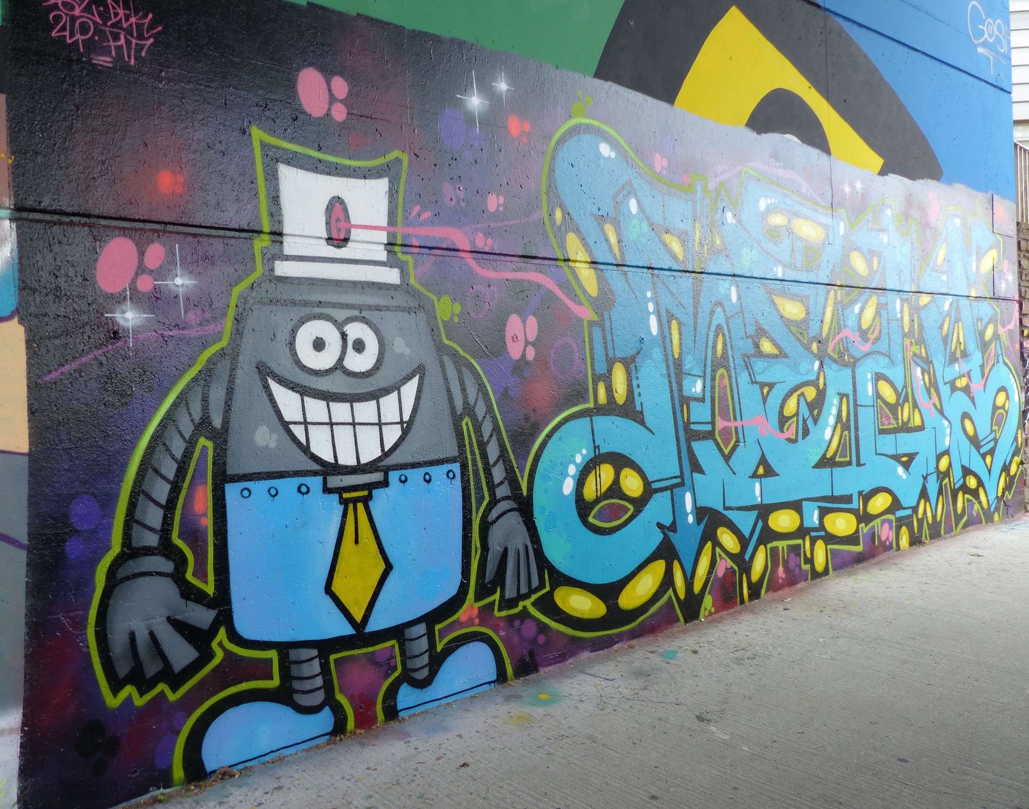 The artwork is of graffiti type. You can admire it in the city of Nantes in France and more precisely here : 7 Quai Ferdinand Favre, 44000 Nantes, France.