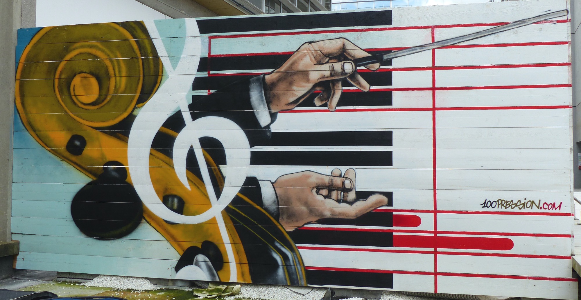 The artwork is of graffiti type. You can admire it in the city of Nantes in France and more precisely here : 2 Avenue Jean Claude Bonduelle, 44000 Nantes, France.
