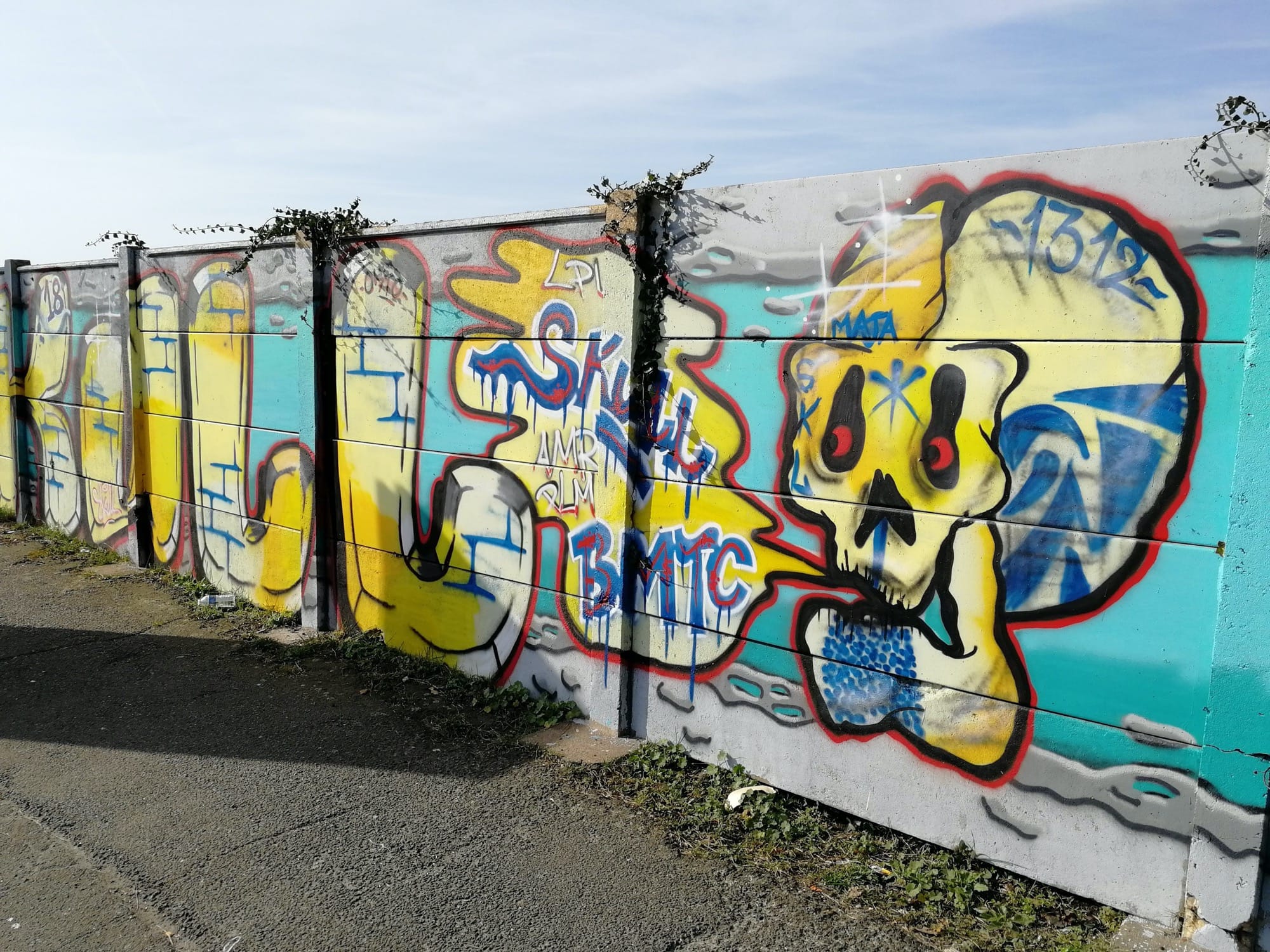 The artwork Skull bmtc is of graffiti type. You can admire it in the city of Saint-Nazaire in France and more precisely here : 177 Boulevard Paul Leferme, 44600 Saint-Nazaire, France.