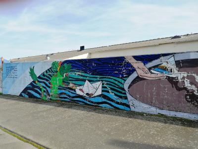 The artwork is of type graffiti. You can admire it in the city of Saint-Nazaire in France, more precisely here: 11 Place de la Rampe, 44600 Saint-Nazaire, France.
