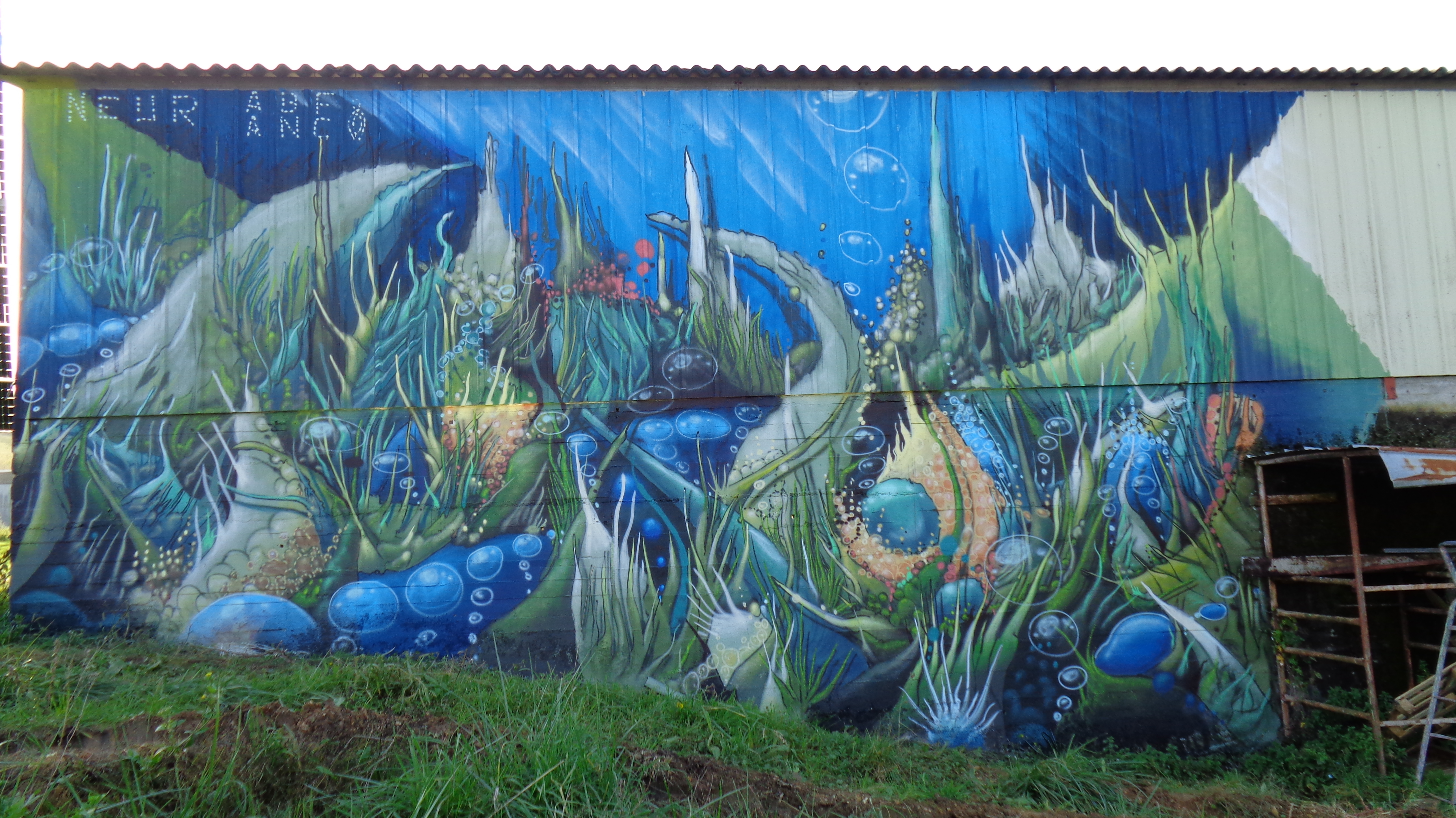 The artwork neur abf anc is of graffiti type. You can admire it in the city of Agonac in France and more precisely here : La Borie Basse, 24460 Agonac, France.