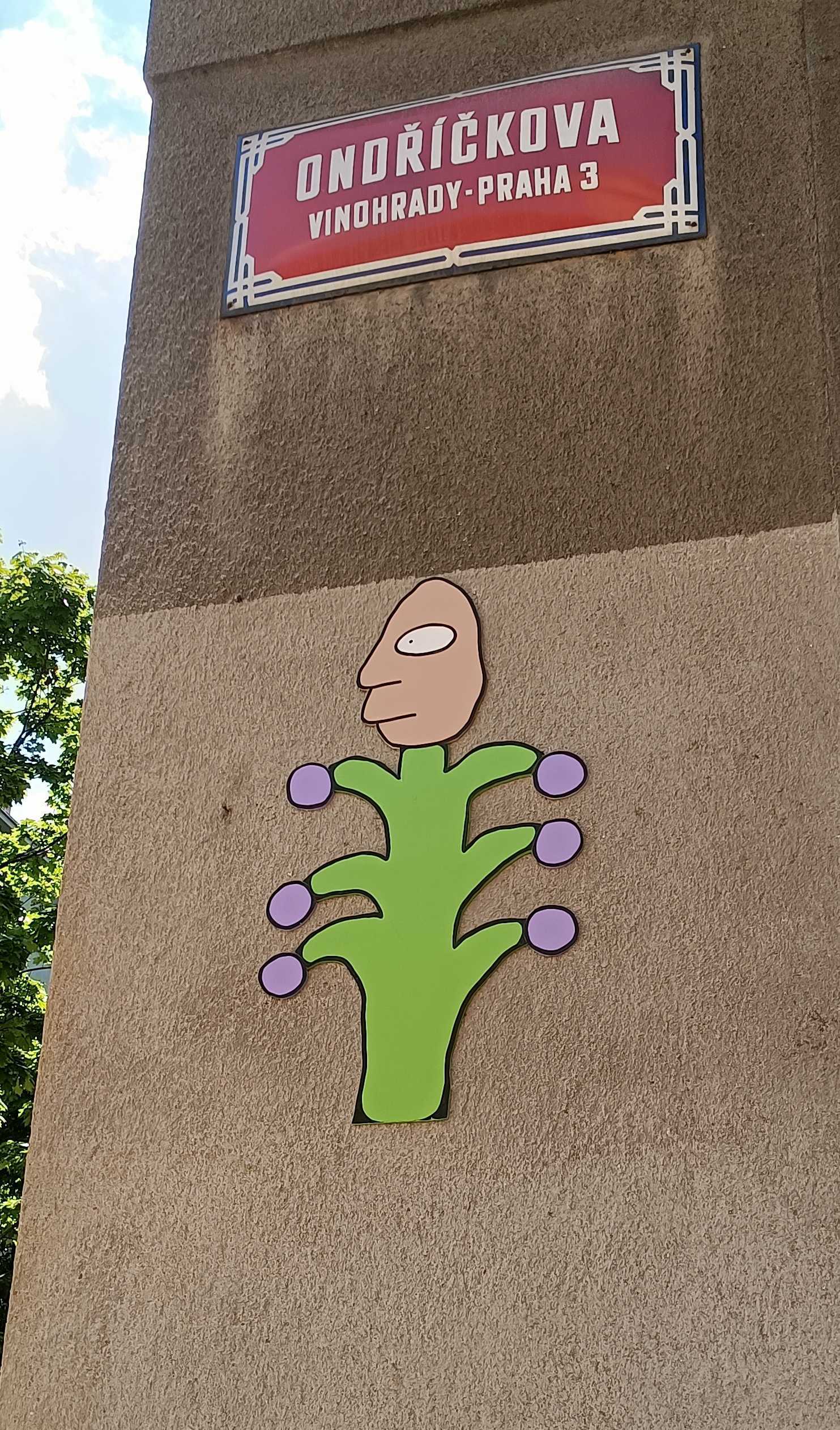 The artwork is of sticking type. You can admire it in the city of Hlavní město Praha in Czechia and more precisely here : Ondříčkova 9, 130 00 Praha 3-Žižkov, Czechia.