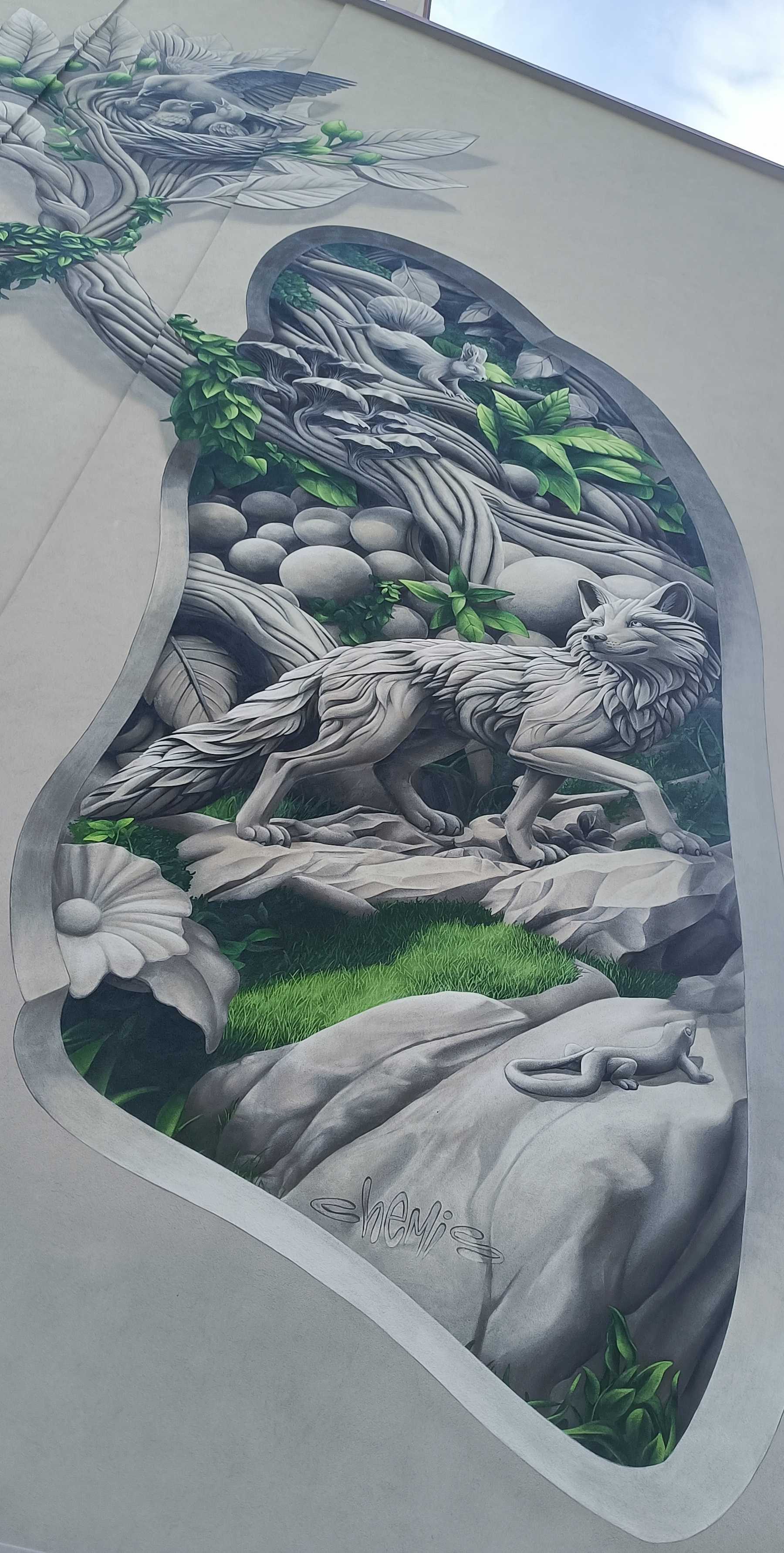 The artwork is of graffiti type. You can admire it in the city of Hlavní město Praha in Czechia and more precisely here : Otakarova, 140 00 Praha-Praha 4, Czechia.