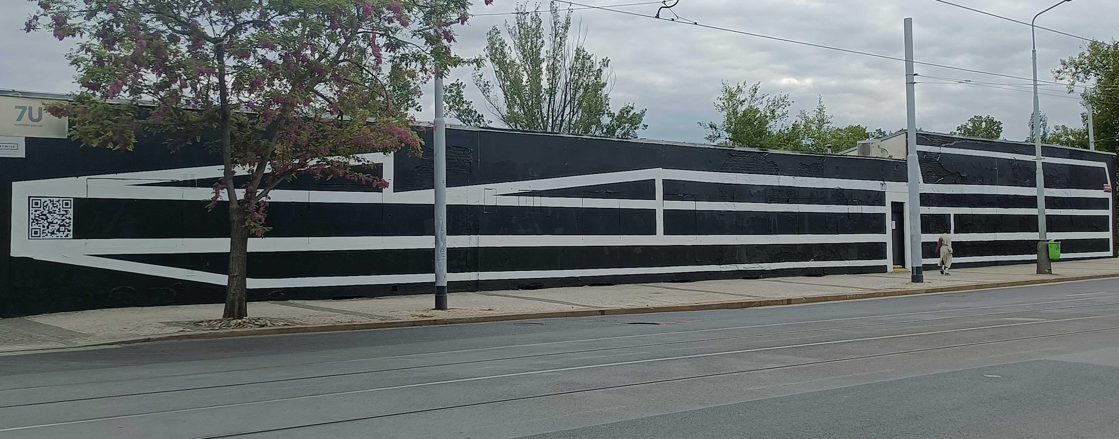 The artwork is of graffiti type. You can admire it in the city of Hlavní město Praha in Czechia and more precisely here : 42, 170 00 Praha 7, Czechia.