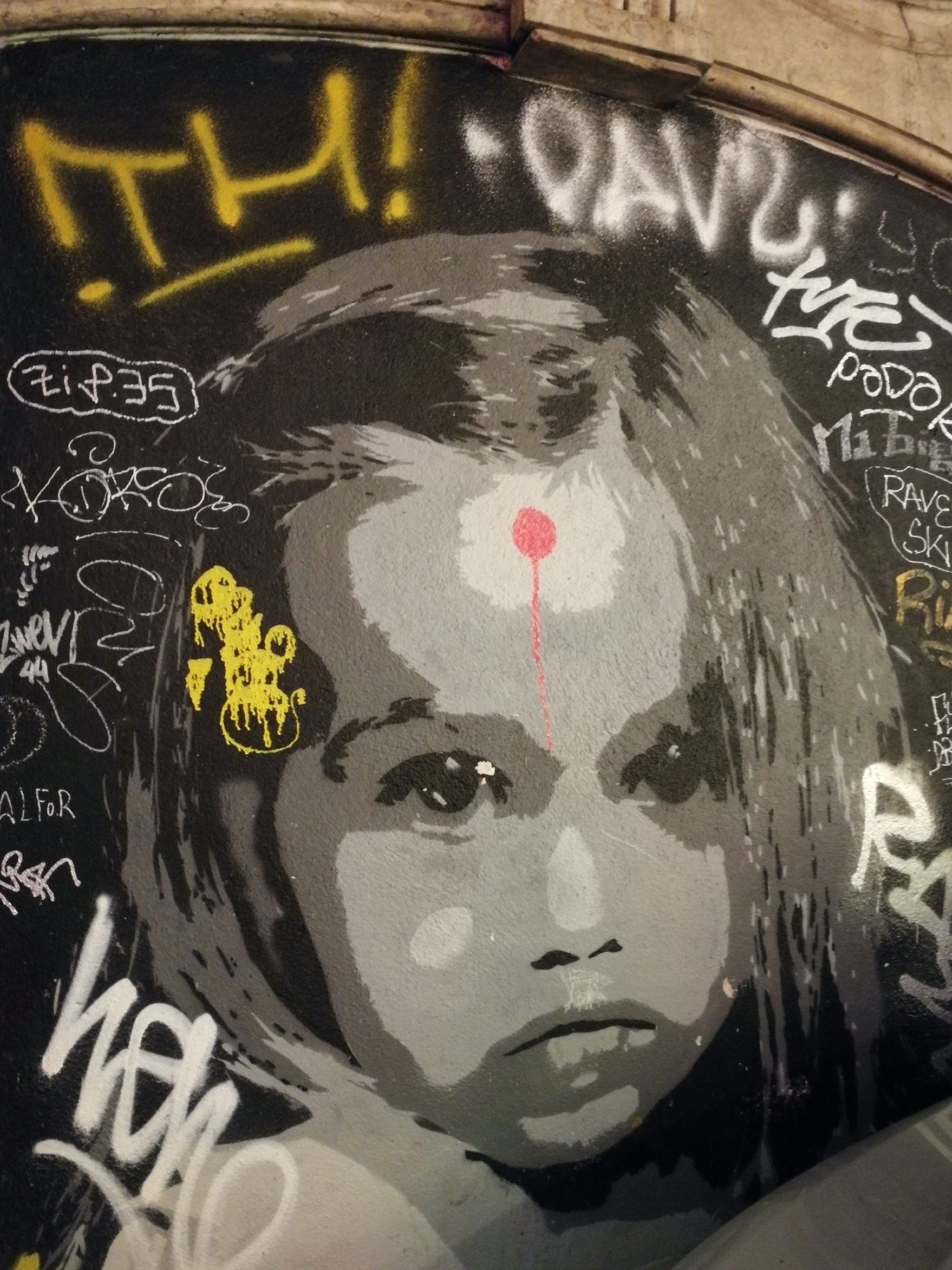 The artwork is of graffiti type. You can admire it in the city of Lisboa in Portugal and more precisely here : R. do Norte 109, 1200-365 Lisboa, Portugal.
