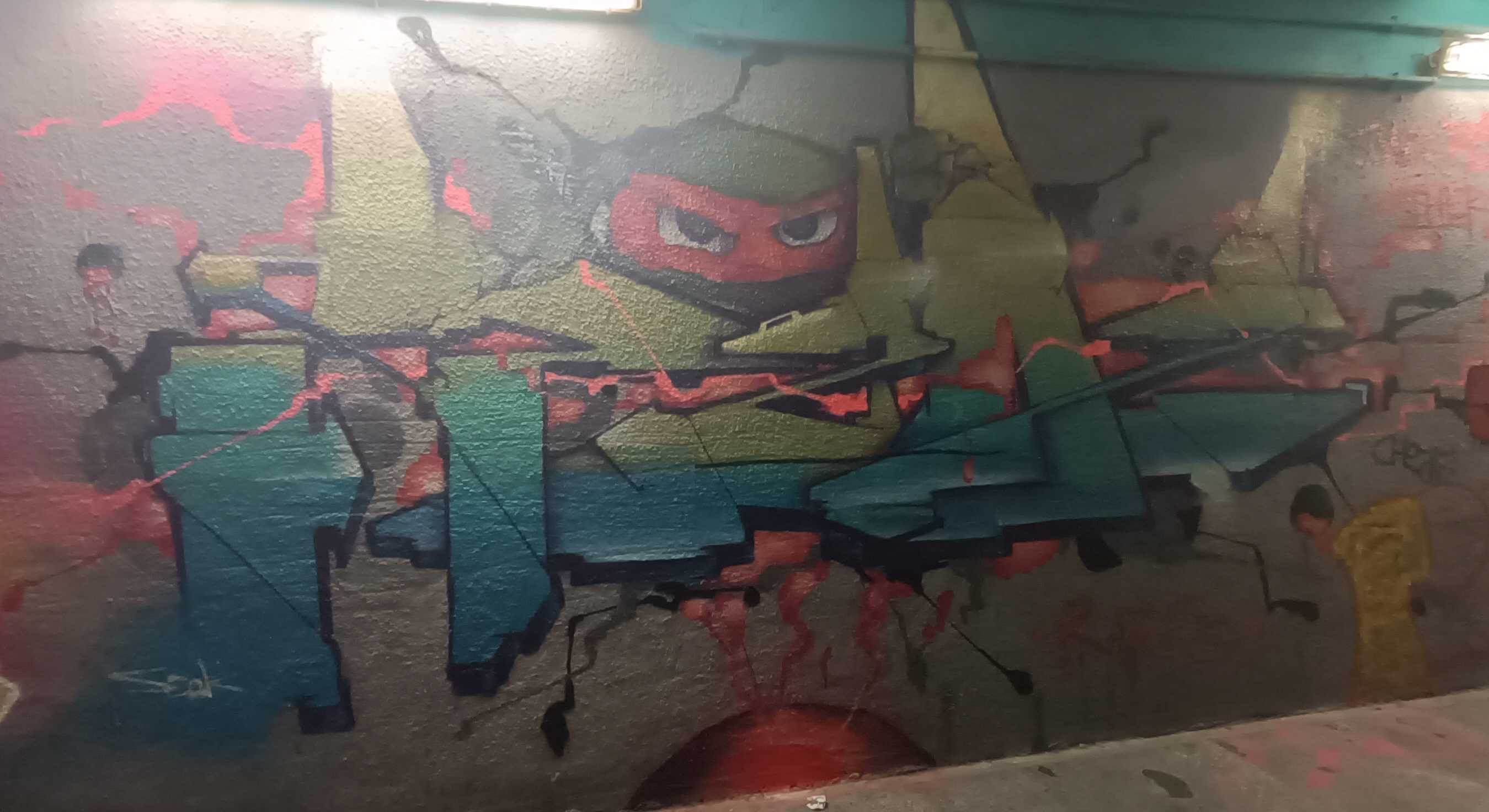 The artwork is of graffiti type. You can admire it in the city of Hlavní město Praha in Czechia and more precisely here : Jankovcova 80, 170 00 Praha 7-Holešovice, Czechia.