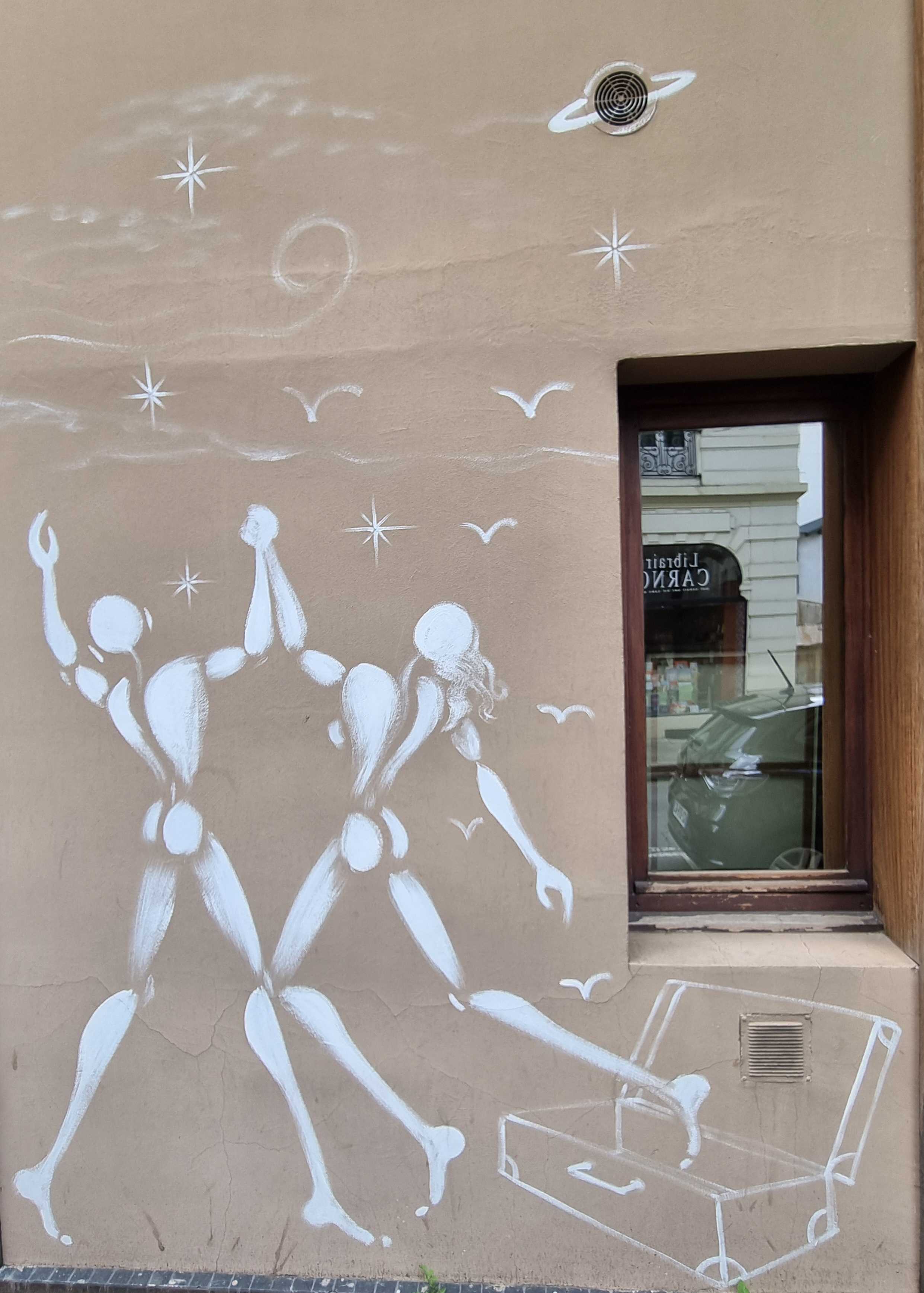 The artwork is of graffiti type. You can admire it in the city of Vichy in France and more precisely here : 10 Av. du Président Doumer, 03200 Vichy, France.