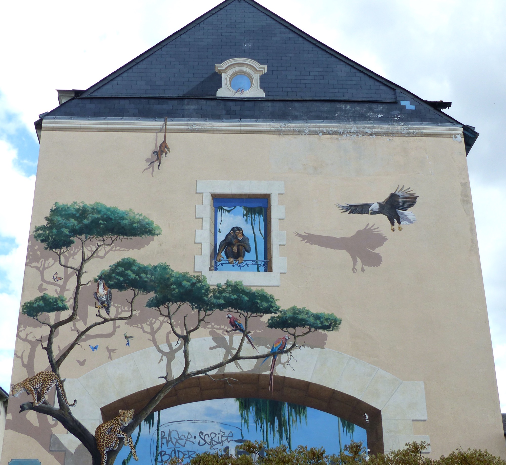The artwork is of graffiti type. You can admire it in the city of Nantes in France and more precisely here : 10 Rue Monteil, 44000 Nantes, France.