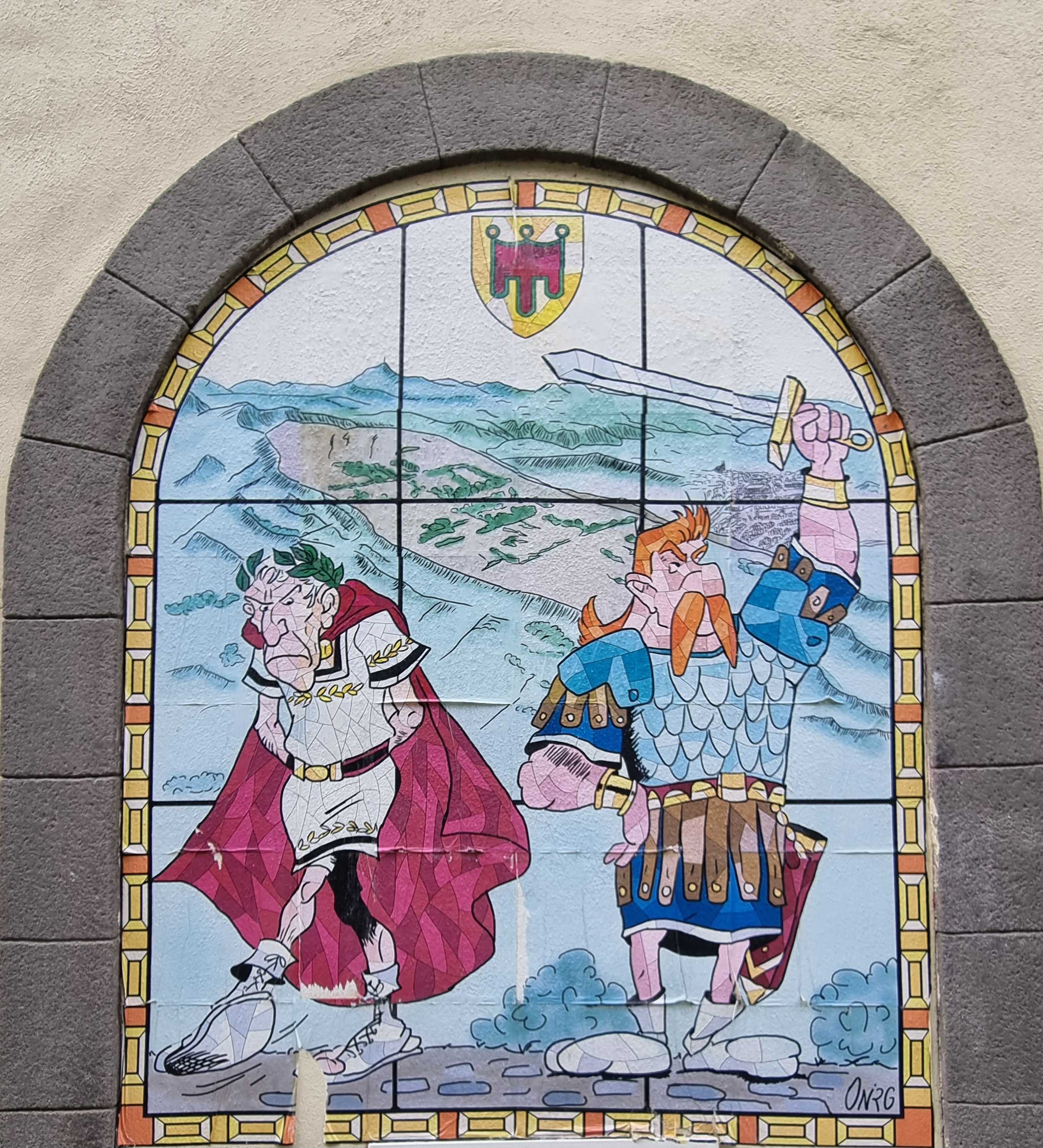 The artwork is of graffiti type. You can admire it in the city of Clermont-Ferrand in France and more precisely here : 2 Pl. de la Victoire, 63000 Clermont-Ferrand, France.