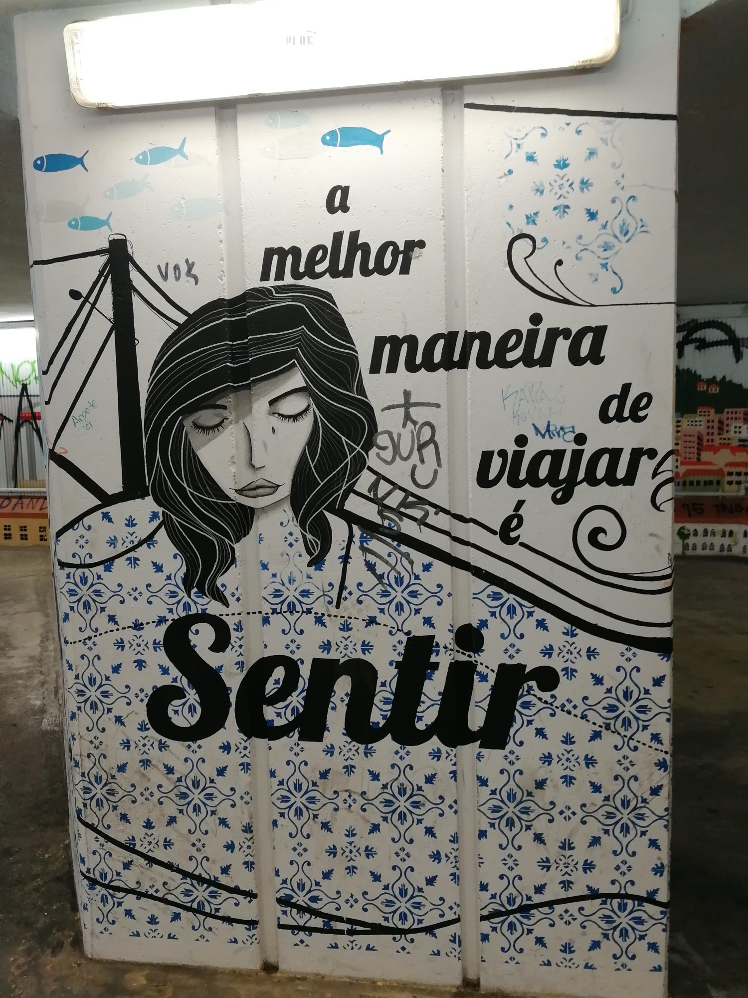 The artwork is of graffiti type. You can admire it in the city of Lisboa in Portugal and more precisely here : R. Cozinha Económica 5, 1300-023 Lisboa, Portugal.