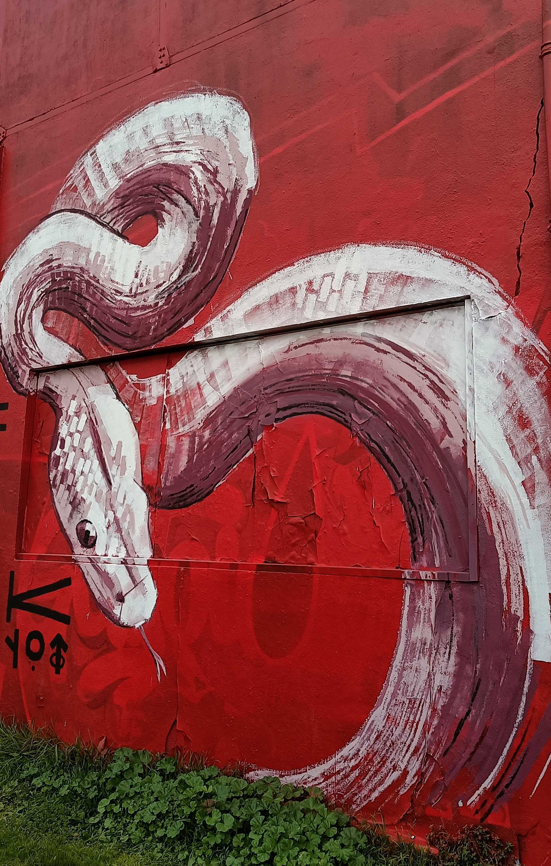 The artwork is of graffiti type. You can admire it in the city of La Rochelle in France and more precisely here : 65 Quai Louis Prunier, 17000 La Rochelle, France.