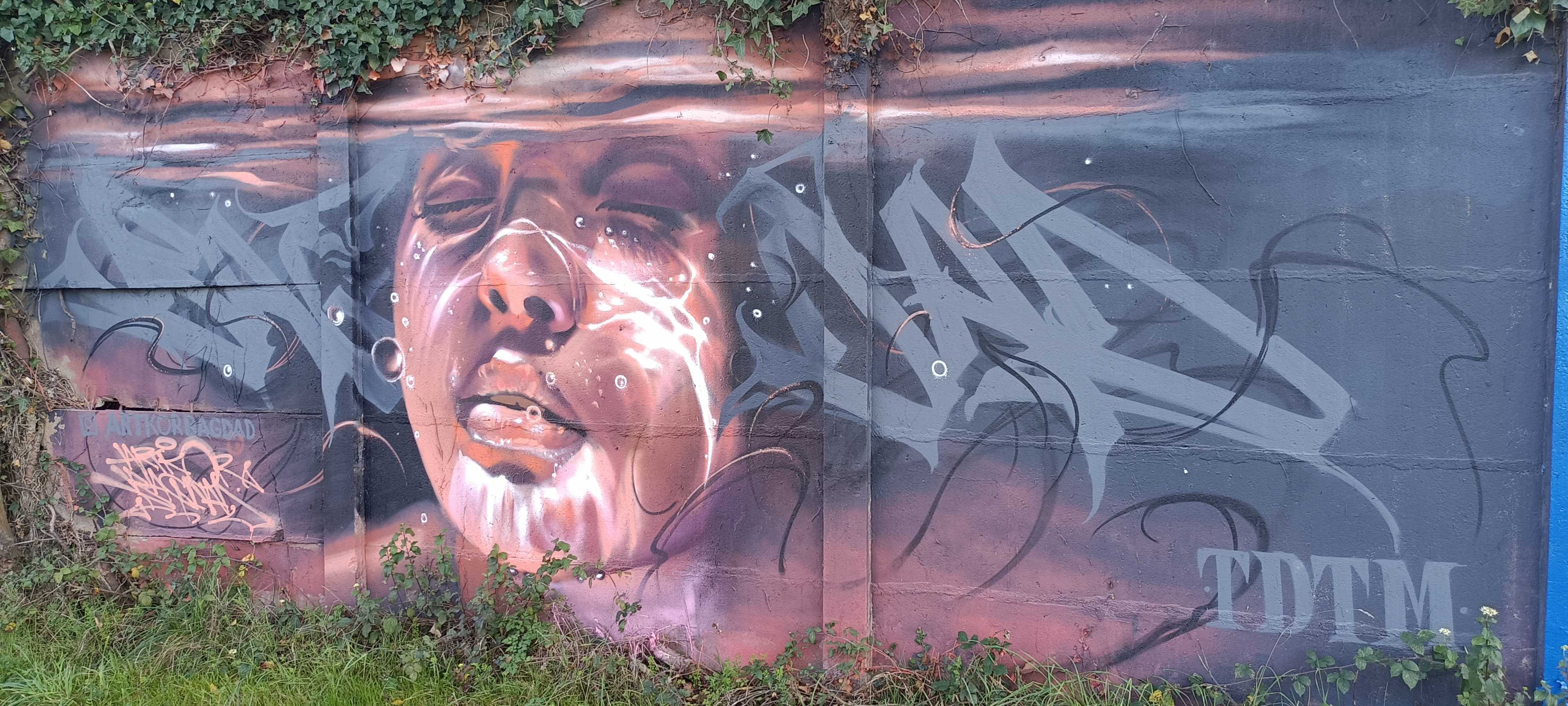 The artwork is of graffiti type. You can admire it in the city of Rennes in France and more precisely here : 564 Rte de Sainte-Foix, 35000 Rennes, France.