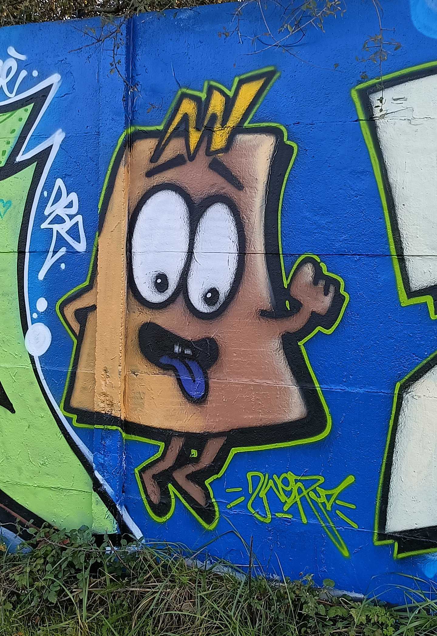 The artwork is of graffiti type. You can admire it in the city of Rennes in France and more precisely here : 564 Rte de Sainte-Foix, 35000 Rennes, France.