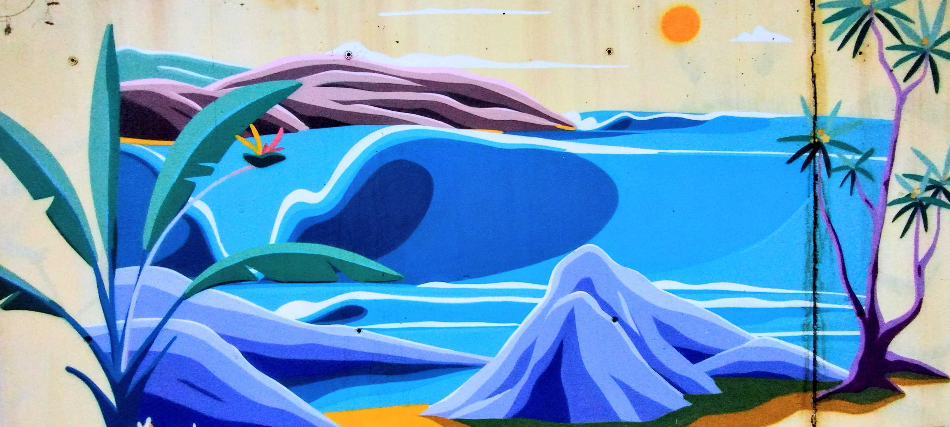 The artwork is of graffiti type. You can admire it in the city of Saint-Paul in Réunion and more precisely here : Boucan Canot, Saint-Paul 97460, Réunion.