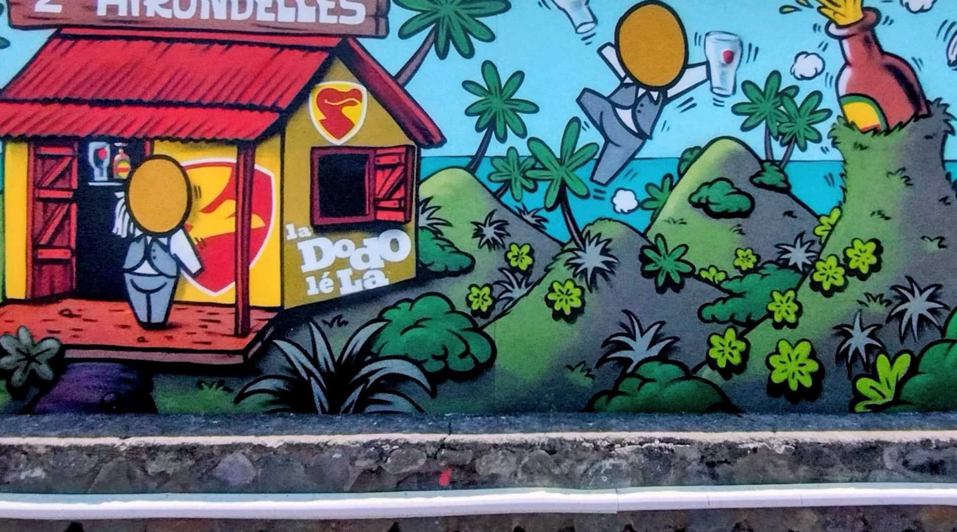 The artwork is of graffiti type. You can admire it in the city of Saint-Denis in Réunion and more precisely here : 9 N1, Saint-Denis 97400, Réunion.