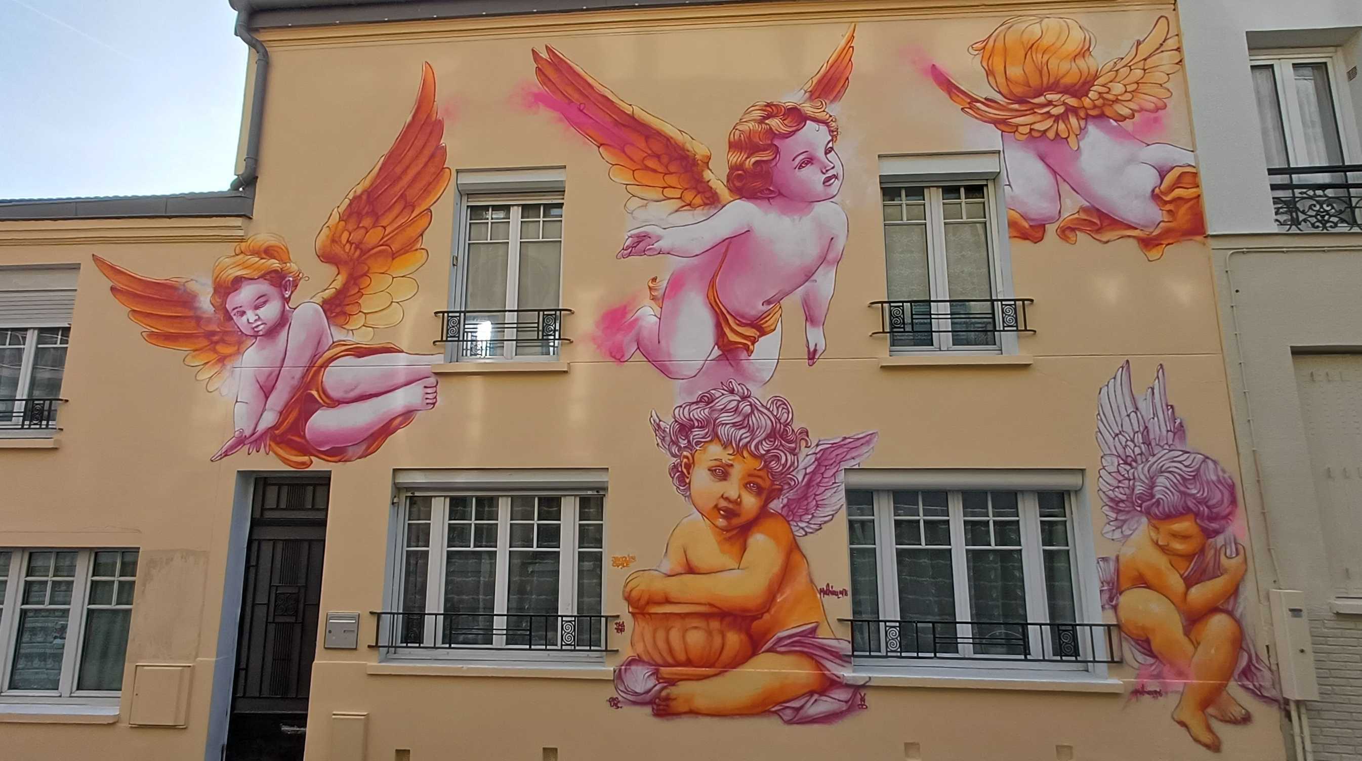 The artwork is of graffiti type. You can admire it in the city of Paris in France and more precisely here : 5 Rue Buot, 75013 Paris, France.
