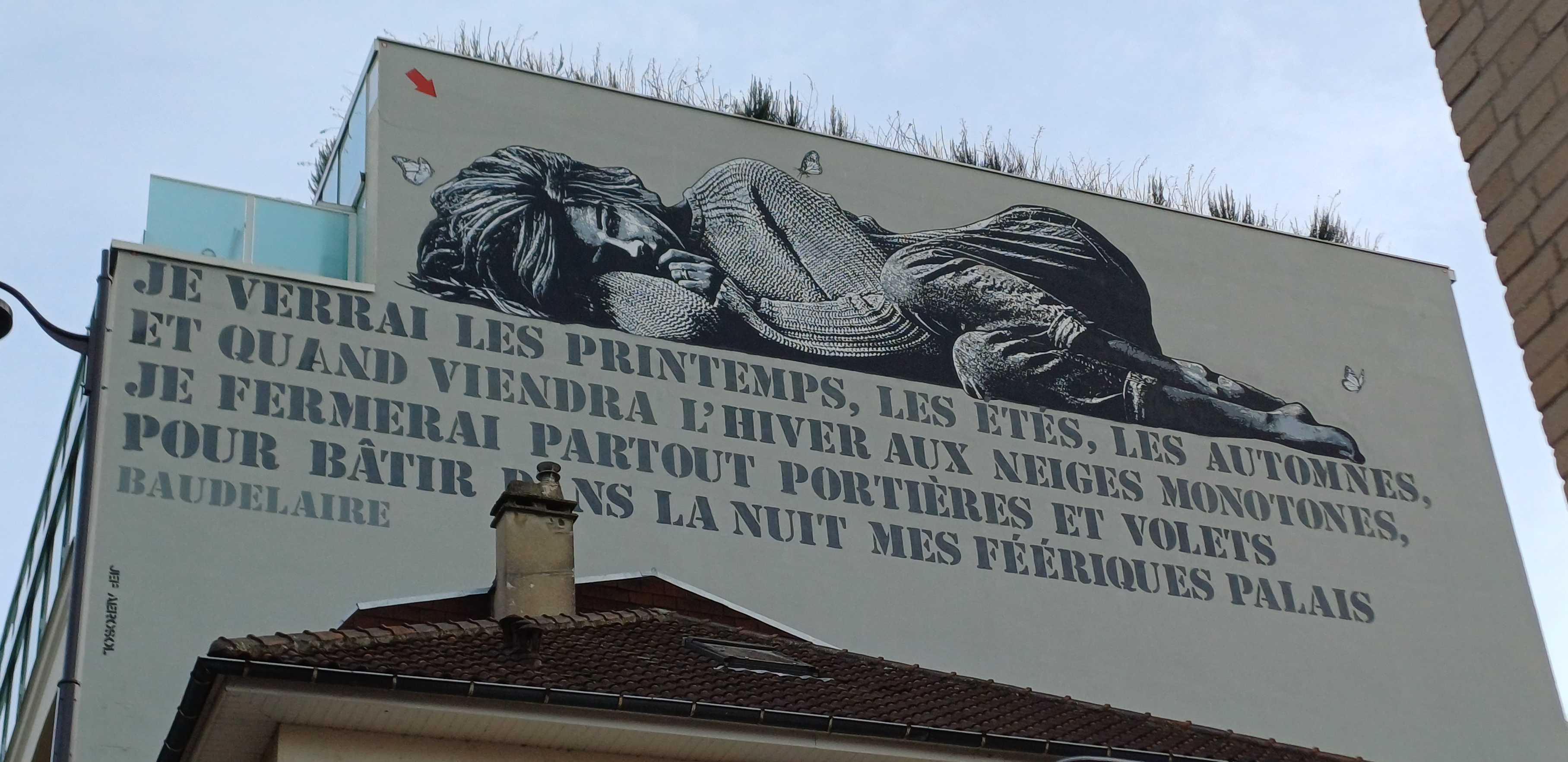 The artwork is of graffiti type. You can admire it in the city of Paris in France and more precisely here : 10 Rue Daviel, 75013 Paris, France.