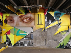 His modern black and white geishas, often nude, tattooed, have been around the world and he was the darling of the latest Art Basel, the art fair of Miami. A sure bet of urban art! Born in Cork, Ireland, Fin Dac lives in London today where he runs a street art gallery in Soho called Beautiful Crimes. On the scene since 2008, he worked for the 2012 Olympic Games or for brands like Armani. His technique mixing stencil and pop painting makes him a unique artist.