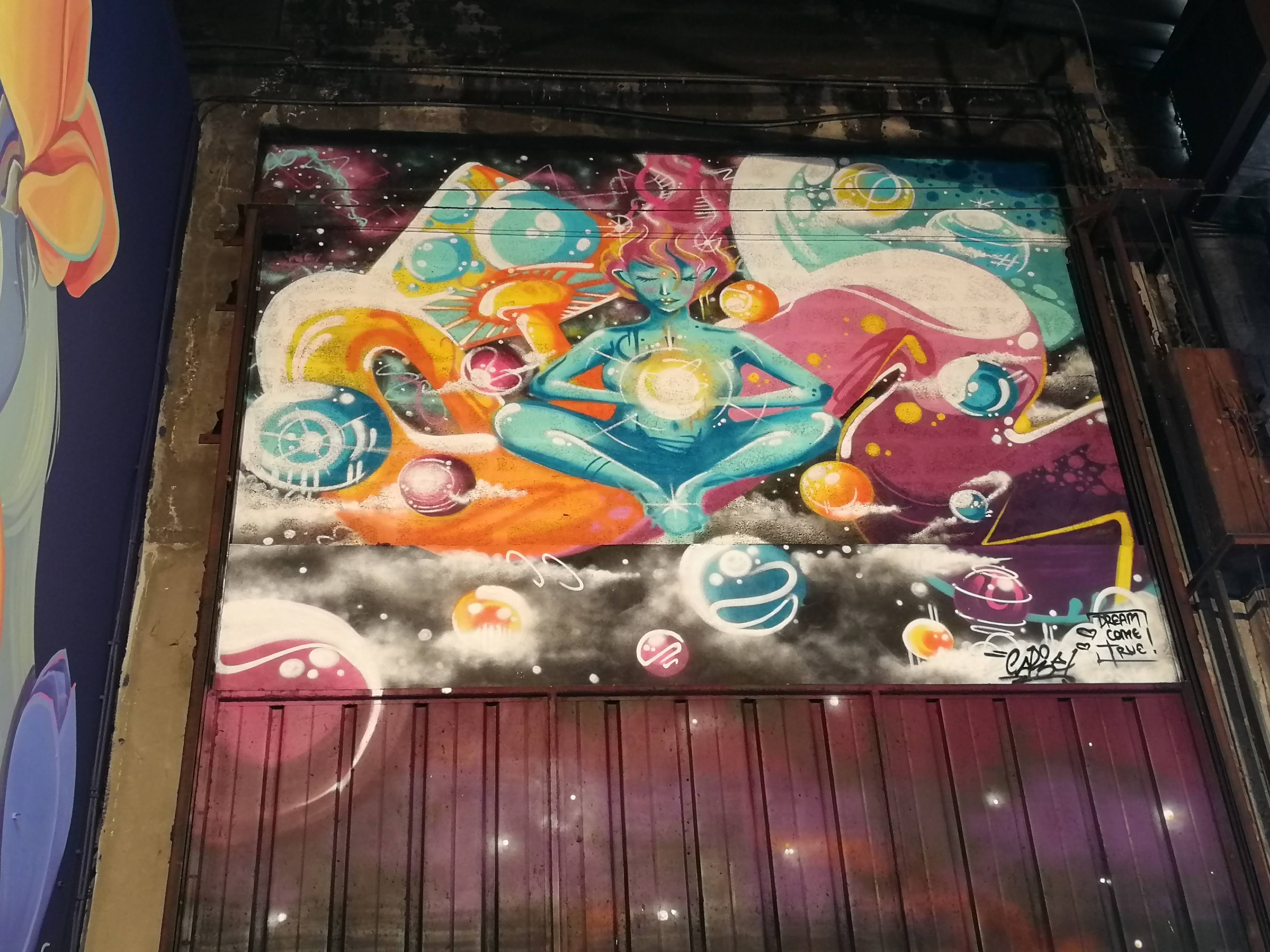 Cape Phi dresses the city with little colorful monsters to share its states of mind. A daily graphic artist, he discovers the street by practicing skateboarding. His profession positively detracts from his drawings that he equips with non-computer-worked colors. The good humor and the pleasure of sharing as engines, it thus brings up a fantastic bestiary on our cross-Roussian walls. Dragons, octopuses, fishes or skulls come together and create mystery.