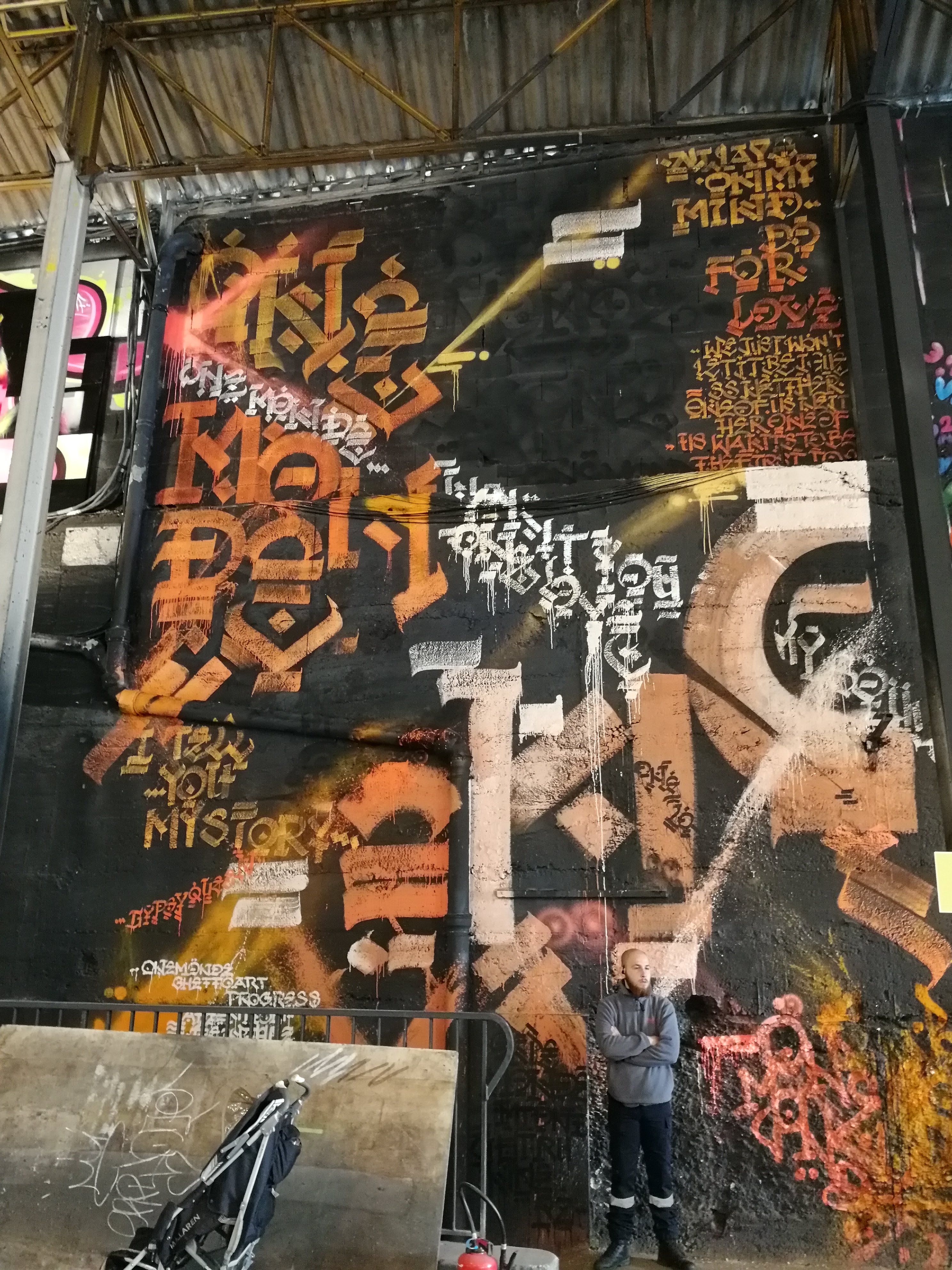 graffiti in the street where he fuses letters, sets and characters in a