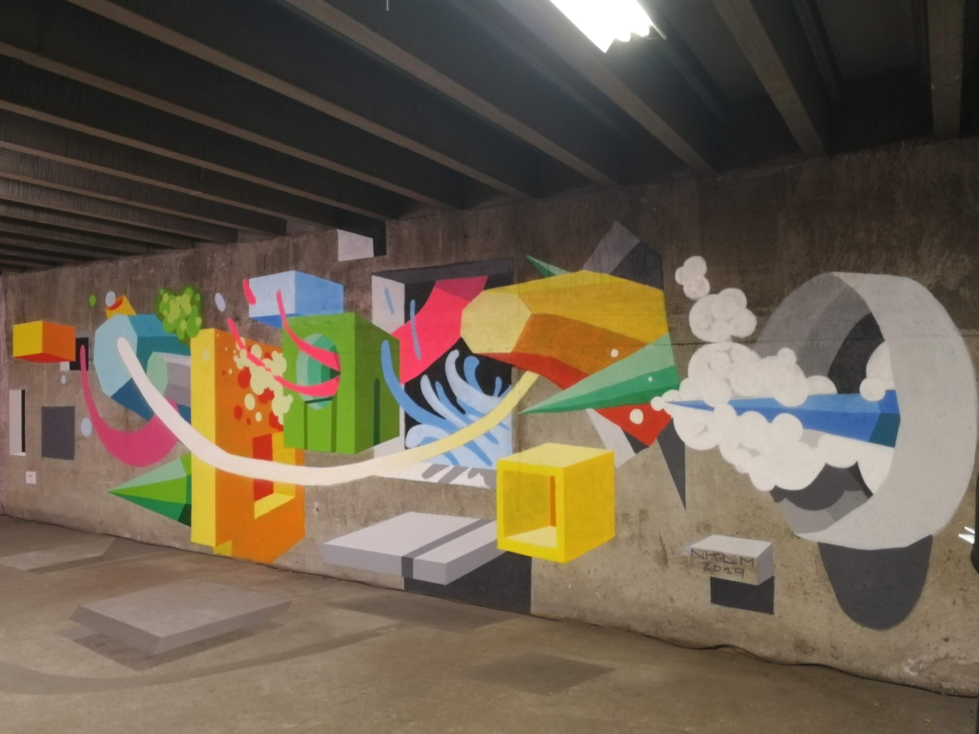 From his beginnings, where, as a student, everything that surrounds drawing fascinates him, to his most recent and imposing murals, this man of shapes has always sought to surprise himself. His perspective games and characters - half flying, half crazy - emerge from the walls and buildings. His fantasy is colorful, futuristic, abstract. NKDM disseminates his creations on boards, stickers, films, skates, paintings. All medium are good!