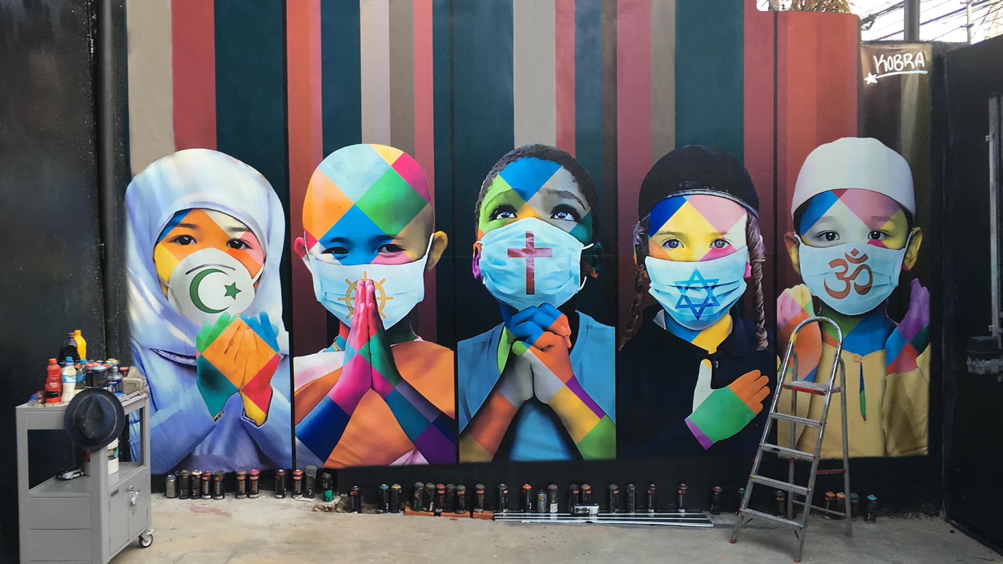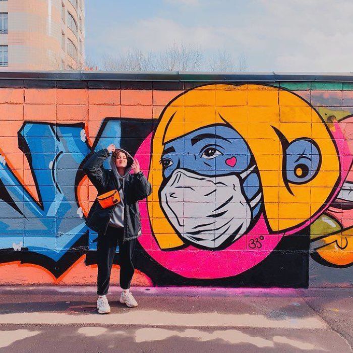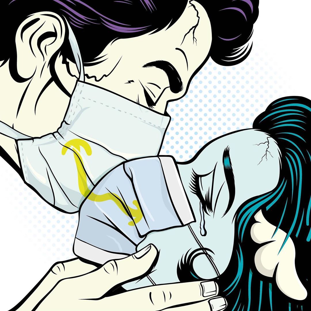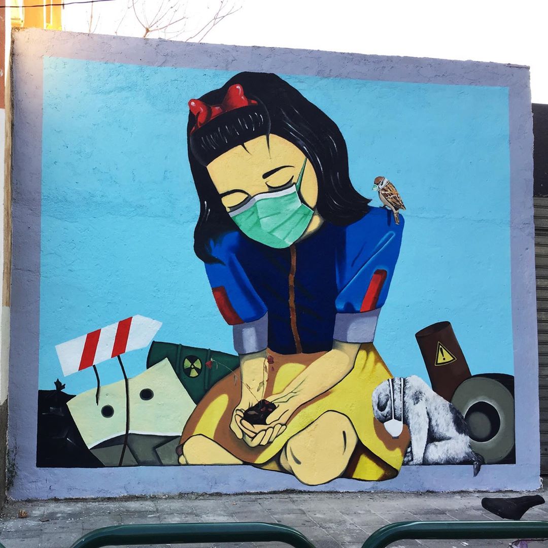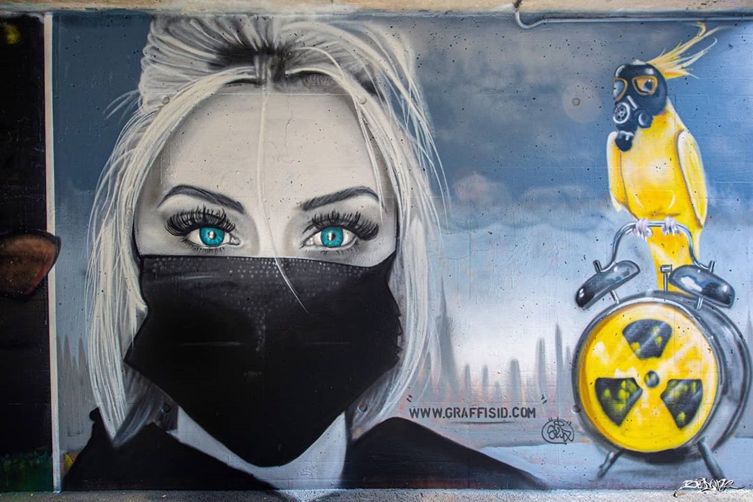 One of the tool against the spread of the virus is the mask, so artists drew a lot of artworks with famous people or anonym people wearing masks.
