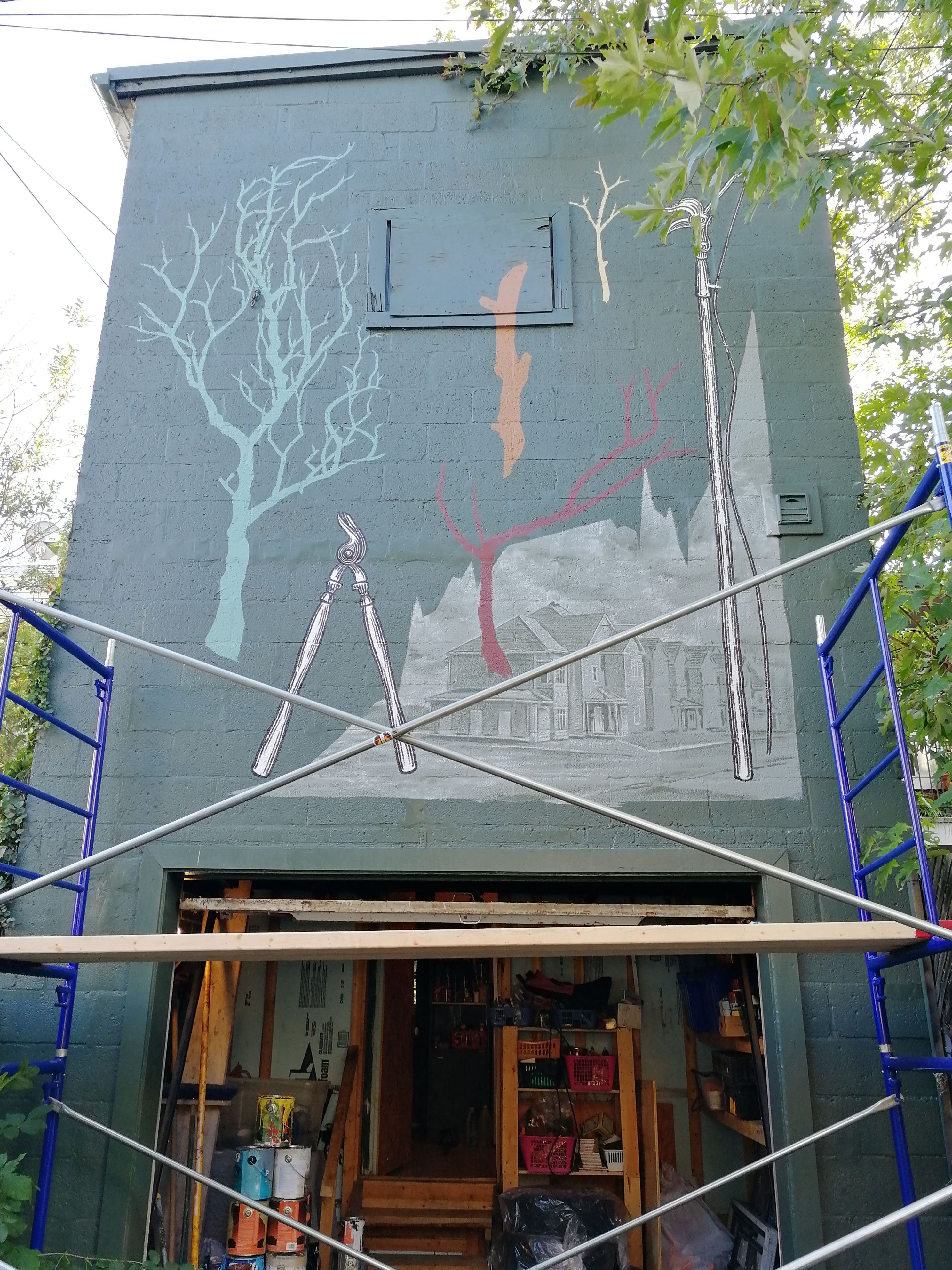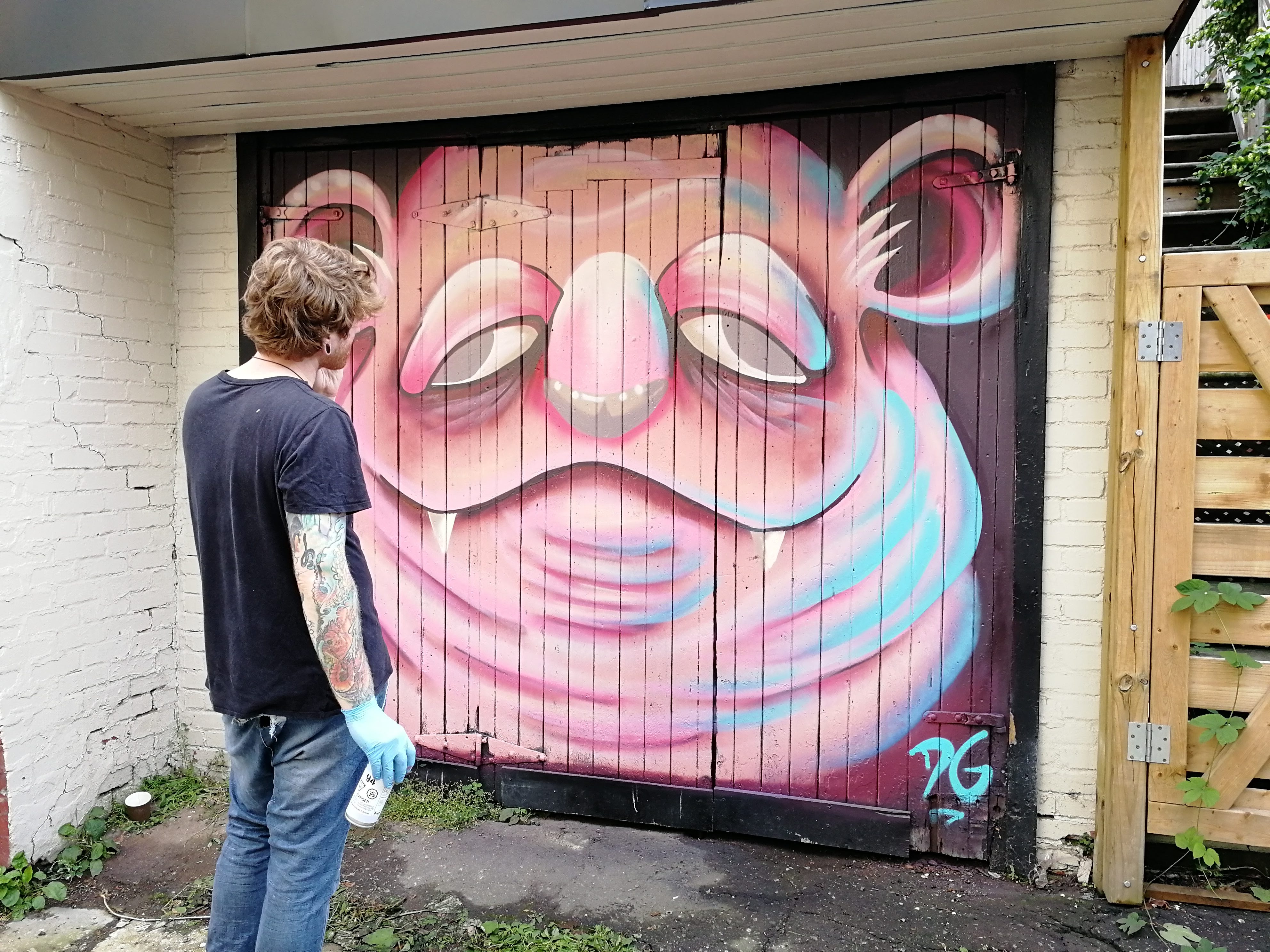 She was really delighted with the result and told me she wanted to keep it but as she had given permission to paint it will be covered next year ...
