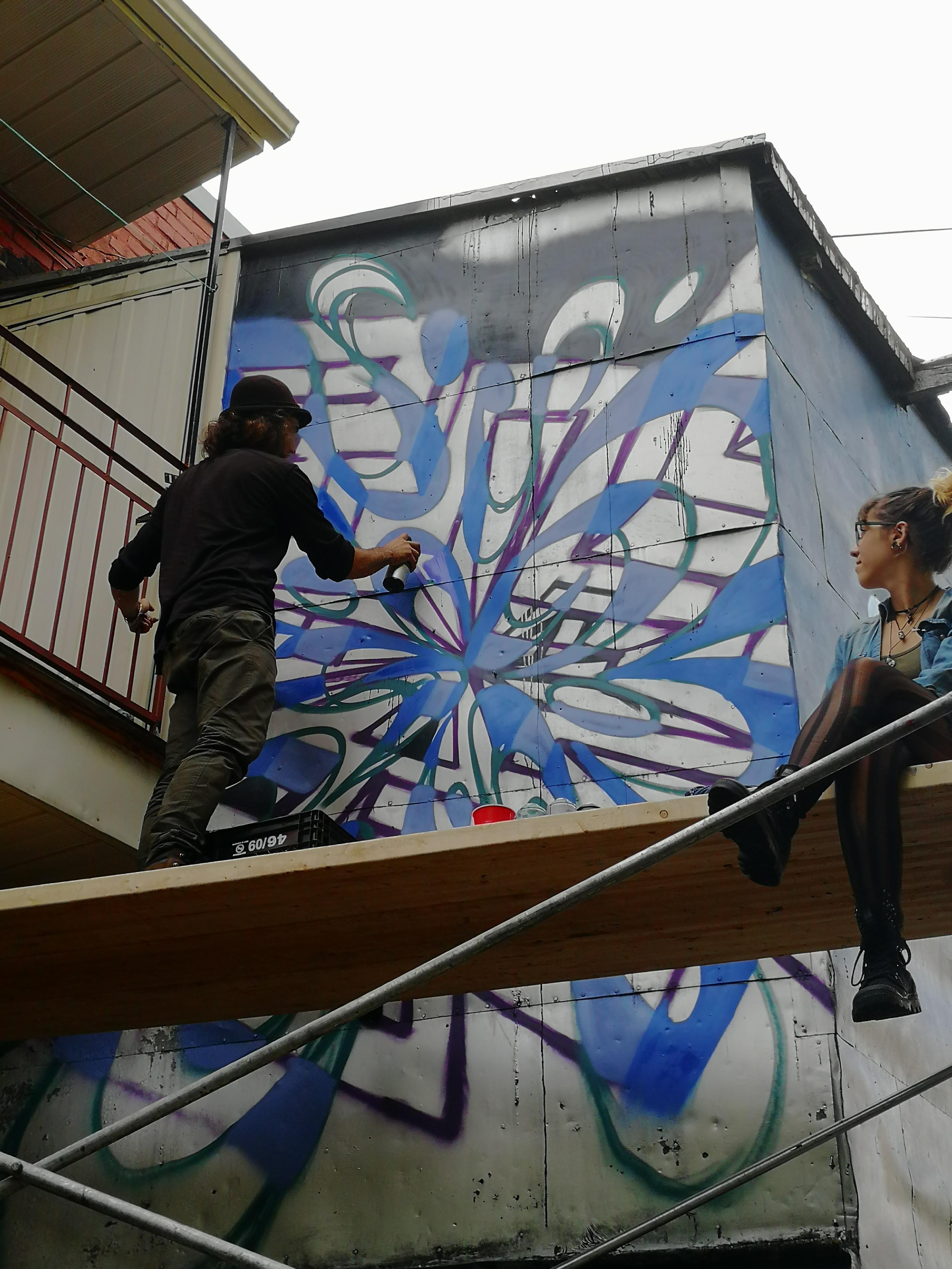 I arrived in the afternoon of the last day. Many artists were still at work because the rain showed up at the festival in the morning, preventing them to progress on their wall.