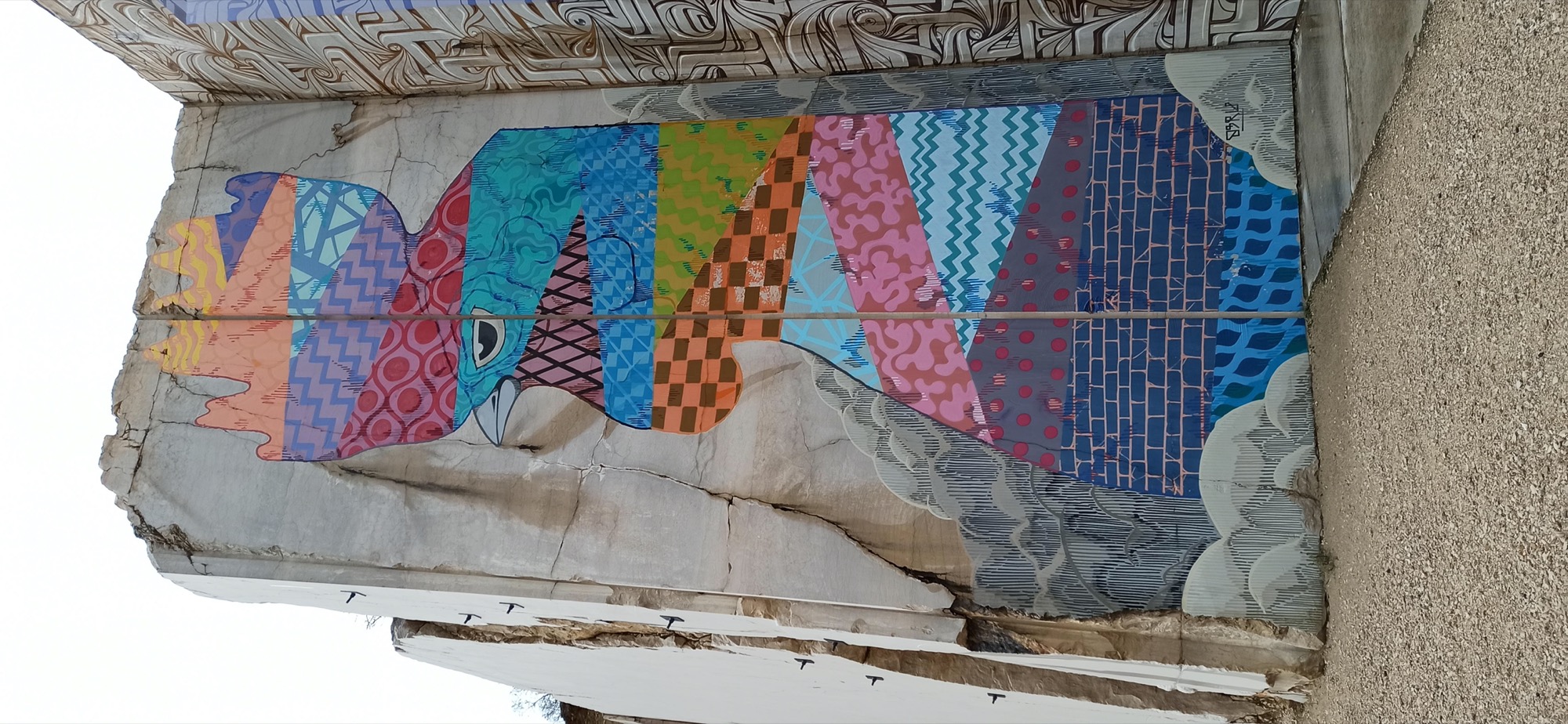 At the end of September, 2 new artists were to come and create new murals. Mode 2, an artist of Mauritian origin, a major figure in hip-hop culture, is from the first generation of European graffiti in the 1980s. Eron, a contemporary artist from Rome who has developed a unique and original style that is particularly surprising often on social themes.