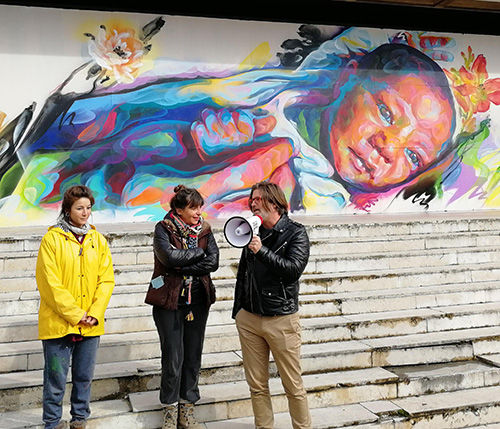 She also repainted a six-storey building in Blois with the portrait of Angela Yvonne Davis, a human rights activist, professor of philosophy and communist activist of American nationality.