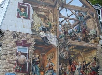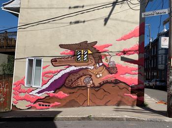 In Quebec, there are many historical murals. You'll also have to go under the bridges of the highways.